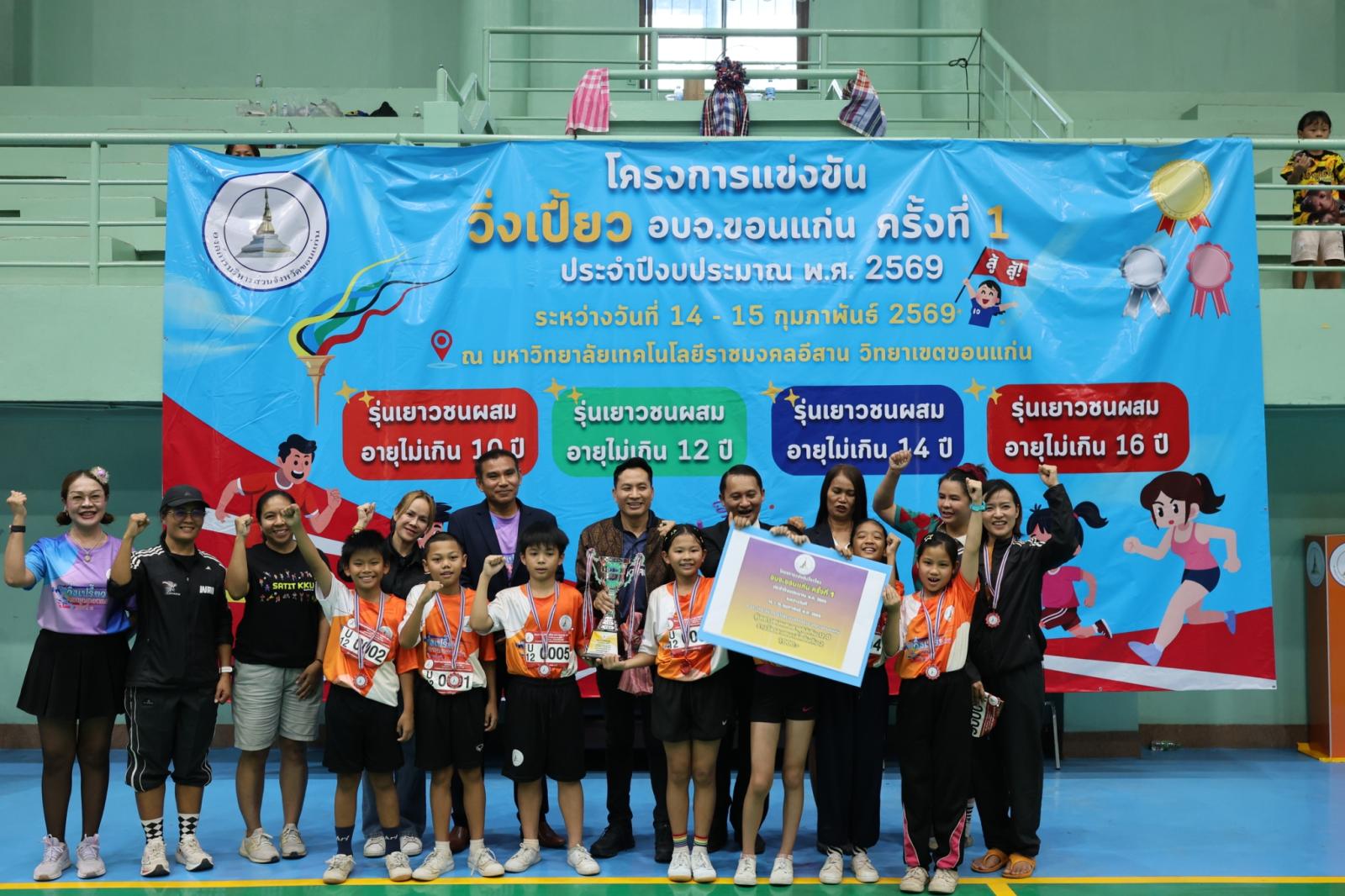 เมื่อวันที่ 15 กุมภาพันธ์ 2569 เวลา 14.30 น. องค์การบริหารส่วนจังหวัดขอนแก่น นำโดย วัฒนา ช่างเหลา นายกองค์การบริหารส่วนจังหวัดขอนแก่น มอบหมายให้ นายนาวิน คำเวียง รองนายกองค์การบริหารส่วนจังหวัดขอนแก่น เป็นประธานในพิธีปิดการแข่งขัน โครงการวิ่งเปี้ยว อบจ.ขอนแก่น ครั้งที่ 1 ประจำปีงบประมาณ 2569