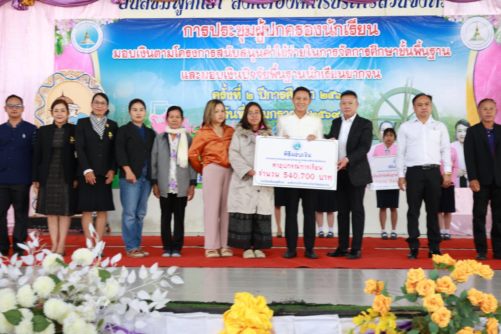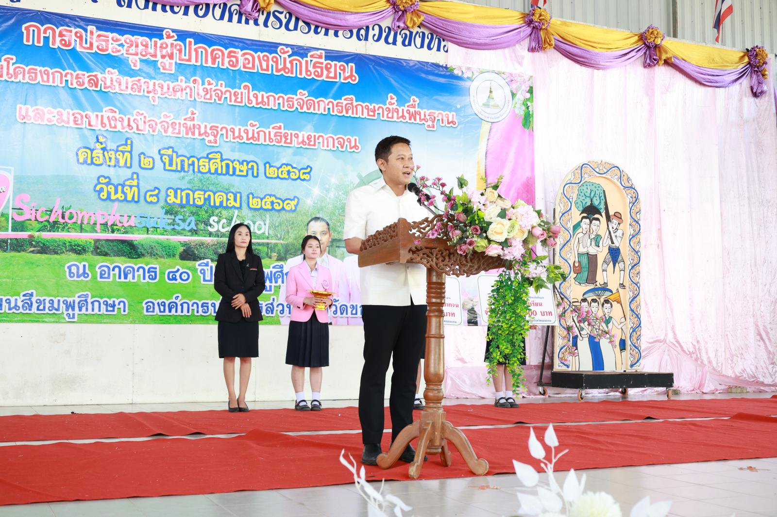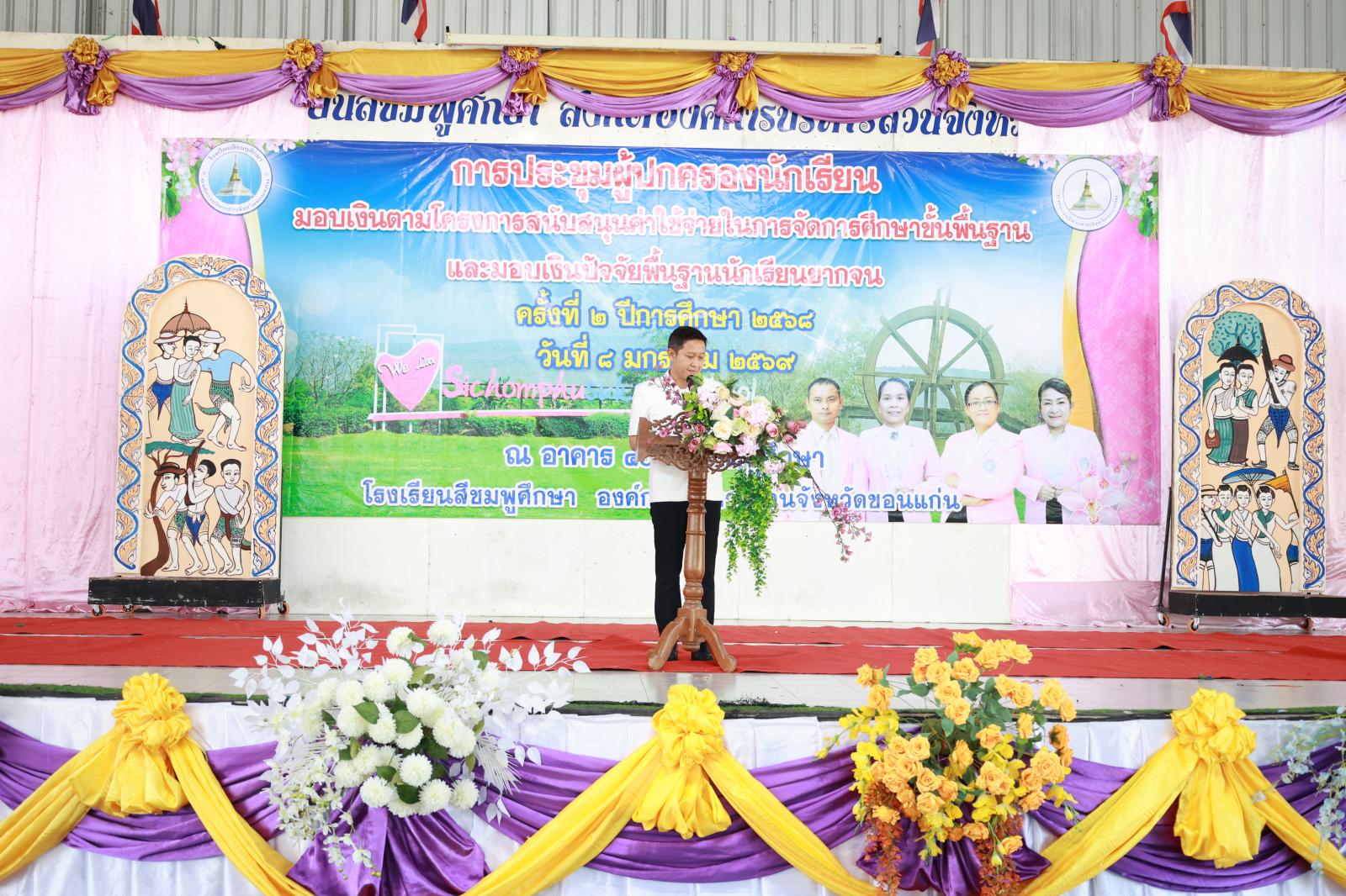 นายวัฒนา ช่างเหลา นายกองค์การบริหารส่วนจังหวัดขอนแก่น เป็นประธานเปิดการประชุมผู้ปกครองนักเรียน พร้อมมอบเงินตาม โครงการสนับสนุนค่าใช้จ่ายการศึกษาขั้นพื้นฐาน ค่าอุปกรณ์การเรียนและเงินปัจจัยพื้นฐานสำหรับนักเรียนยากจน ภาคเรียนที่ 2 ปีการศึกษา 2568 โดยมี นางสุภาวดี ภาระดี รองผู้อำนวยการสถานศึกษา รักษาราชการแทนผู้อำนวยการโรงเรียนสีชมพูศึกษา กล่าวรายงาน