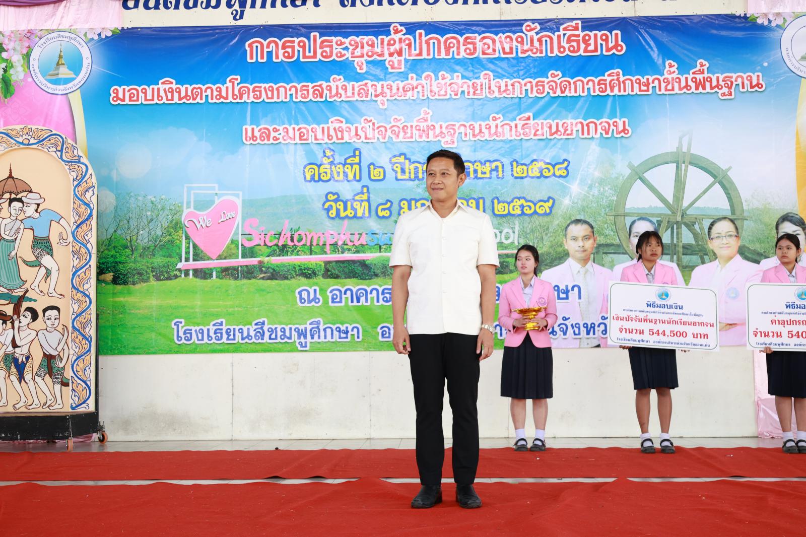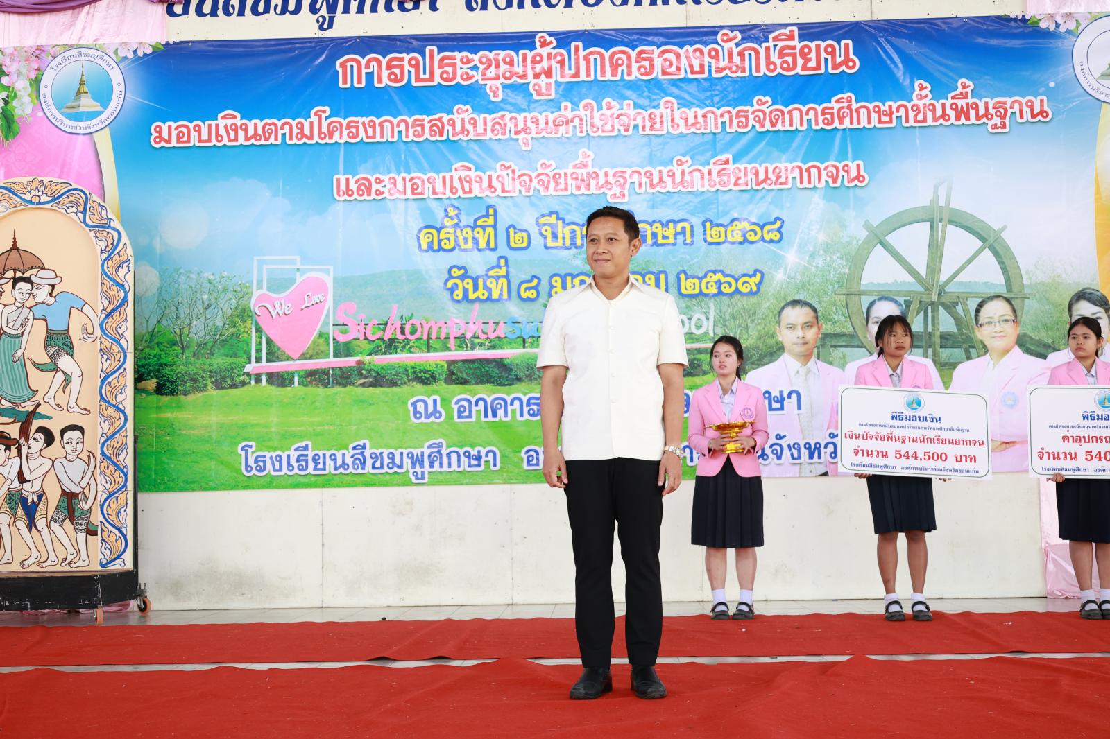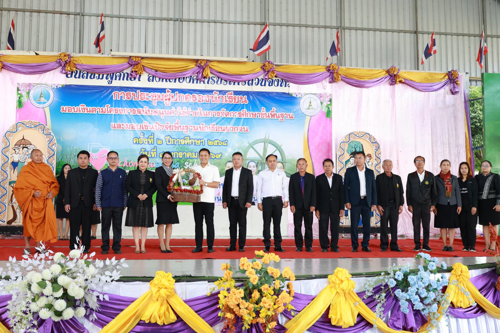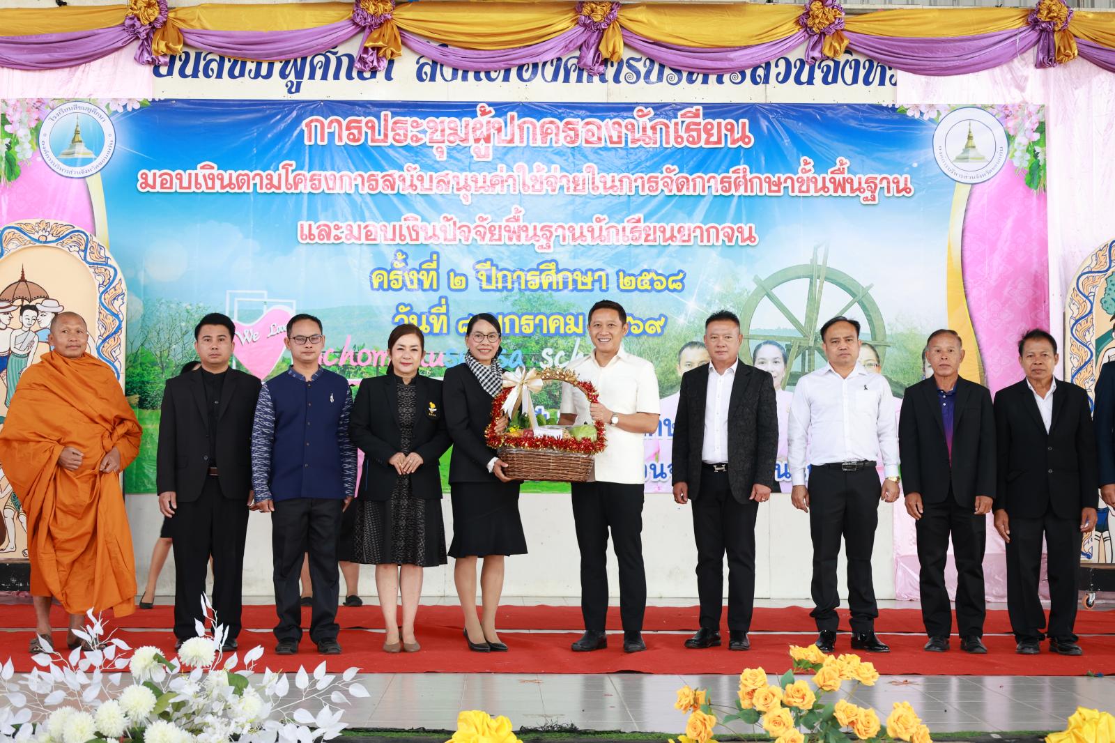 นายวัฒนา ช่างเหลา นายกองค์การบริหารส่วนจังหวัดขอนแก่น เป็นประธานเปิดการประชุมผู้ปกครองนักเรียน พร้อมมอบเงินตาม โครงการสนับสนุนค่าใช้จ่ายการศึกษาขั้นพื้นฐาน ค่าอุปกรณ์การเรียนและเงินปัจจัยพื้นฐานสำหรับนักเรียนยากจน ภาคเรียนที่ 2 ปีการศึกษา 2568 โดยมี นางสุภาวดี ภาระดี รองผู้อำนวยการสถานศึกษา รักษาราชการแทนผู้อำนวยการโรงเรียนสีชมพูศึกษา กล่าวรายงาน