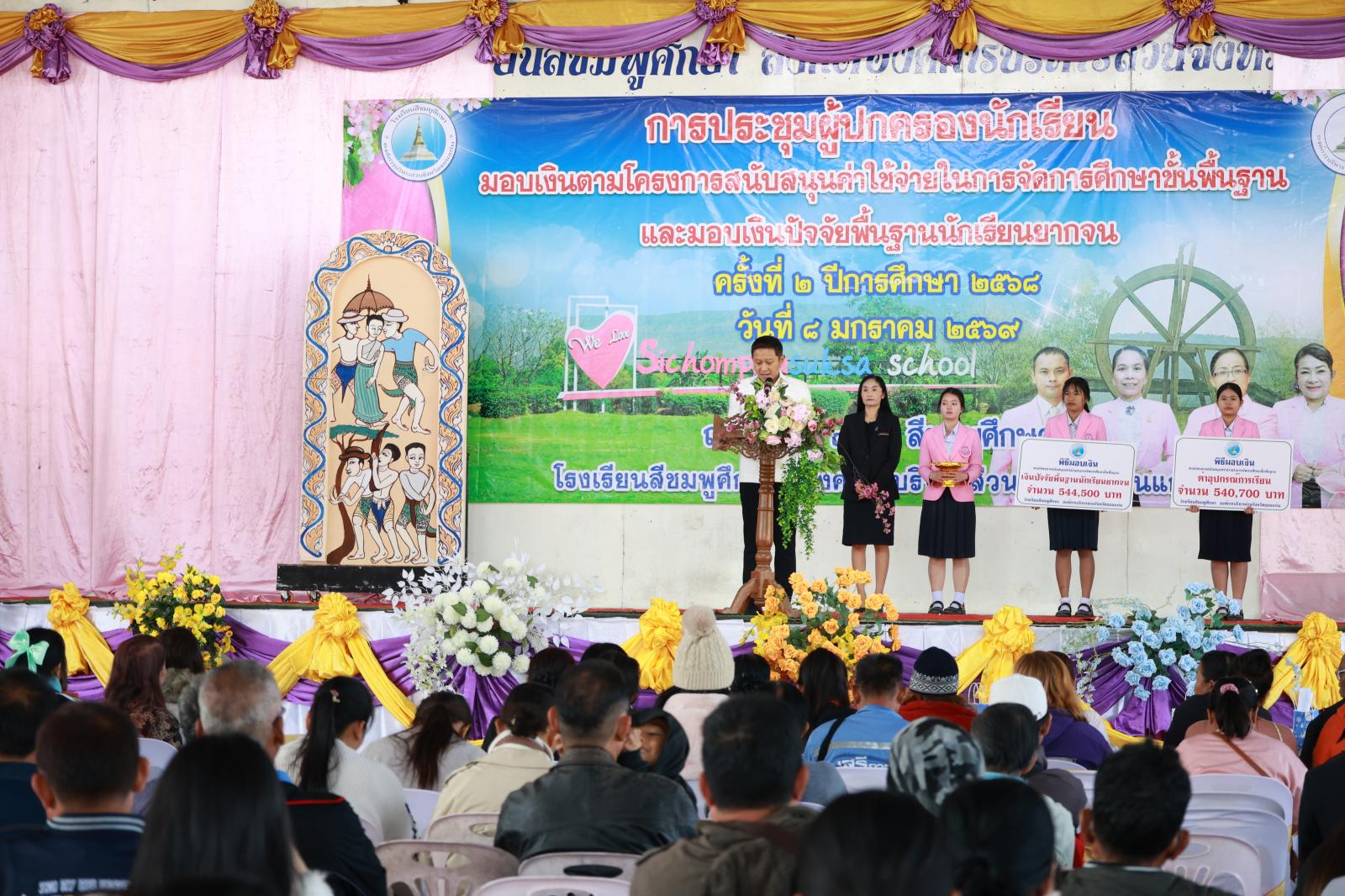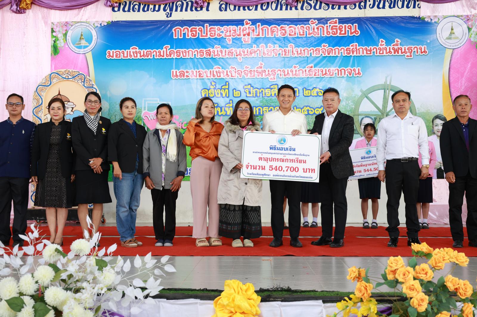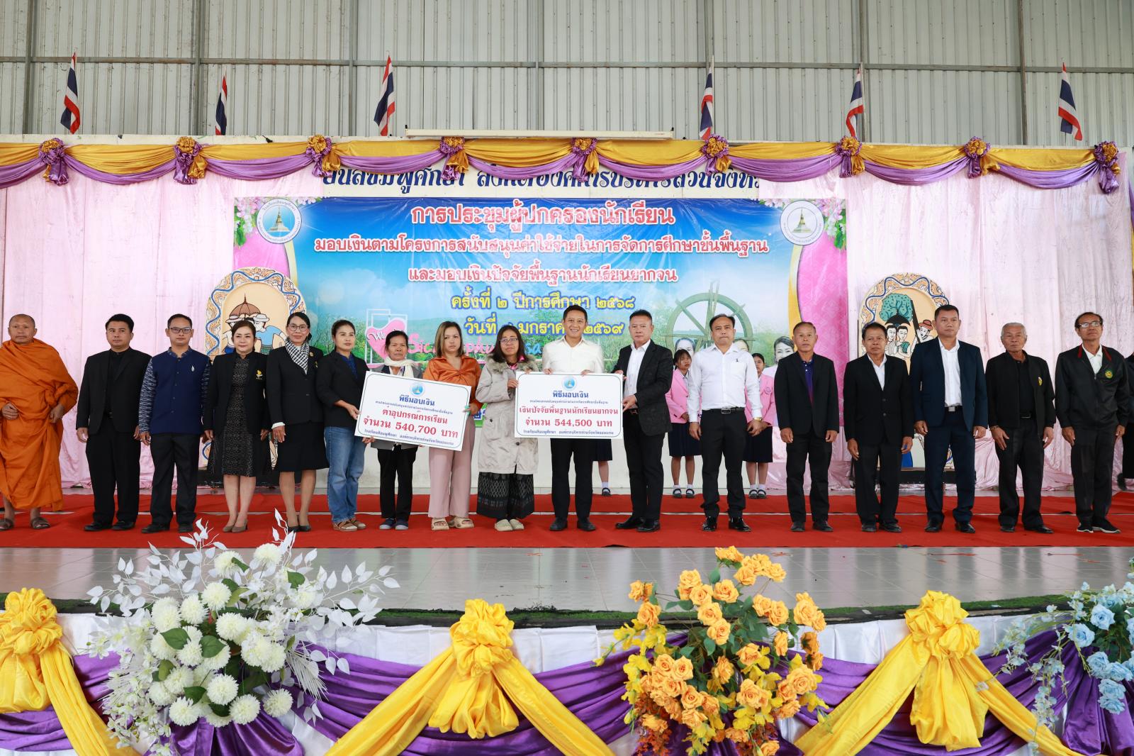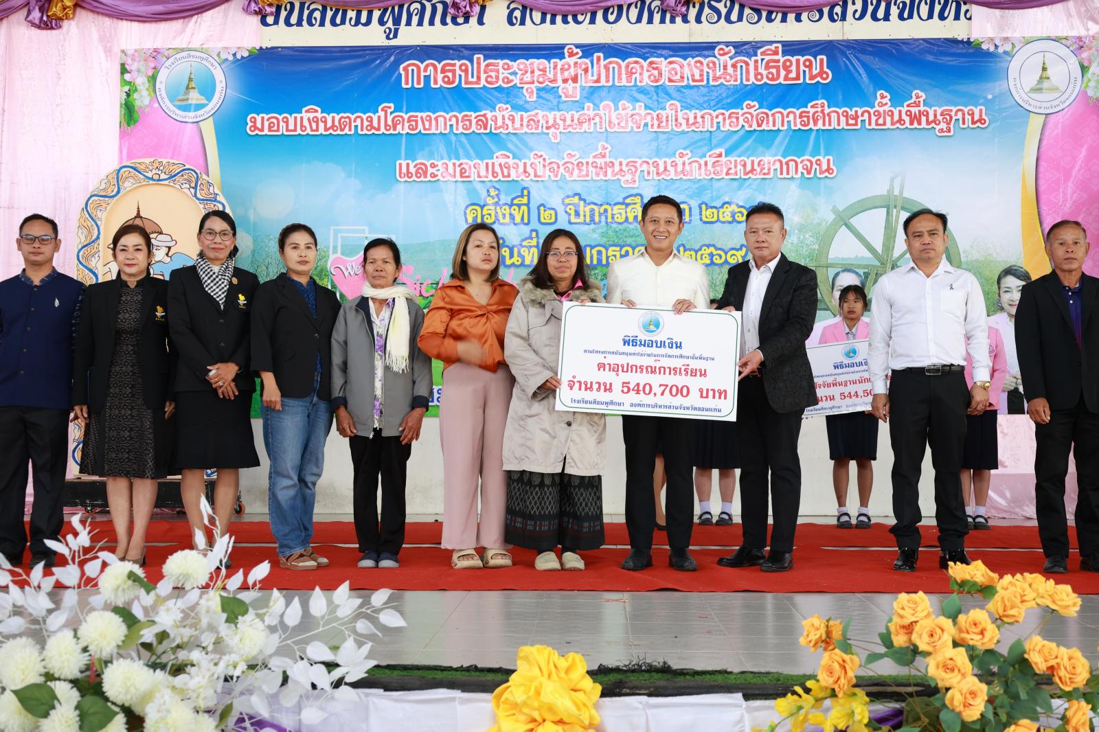 องค์การบริหารส่วนจังหวัดขอนแก่นมอบเงินสนับสนุนค่าใช้จ่ายการศึกษาขั้นพื้นฐาน ค่าอุปกรณ์การเรียนและเงินปัจจัยพื้นฐานสำหรับนักเรียน โรงเรียนสีชมพูศึกษา