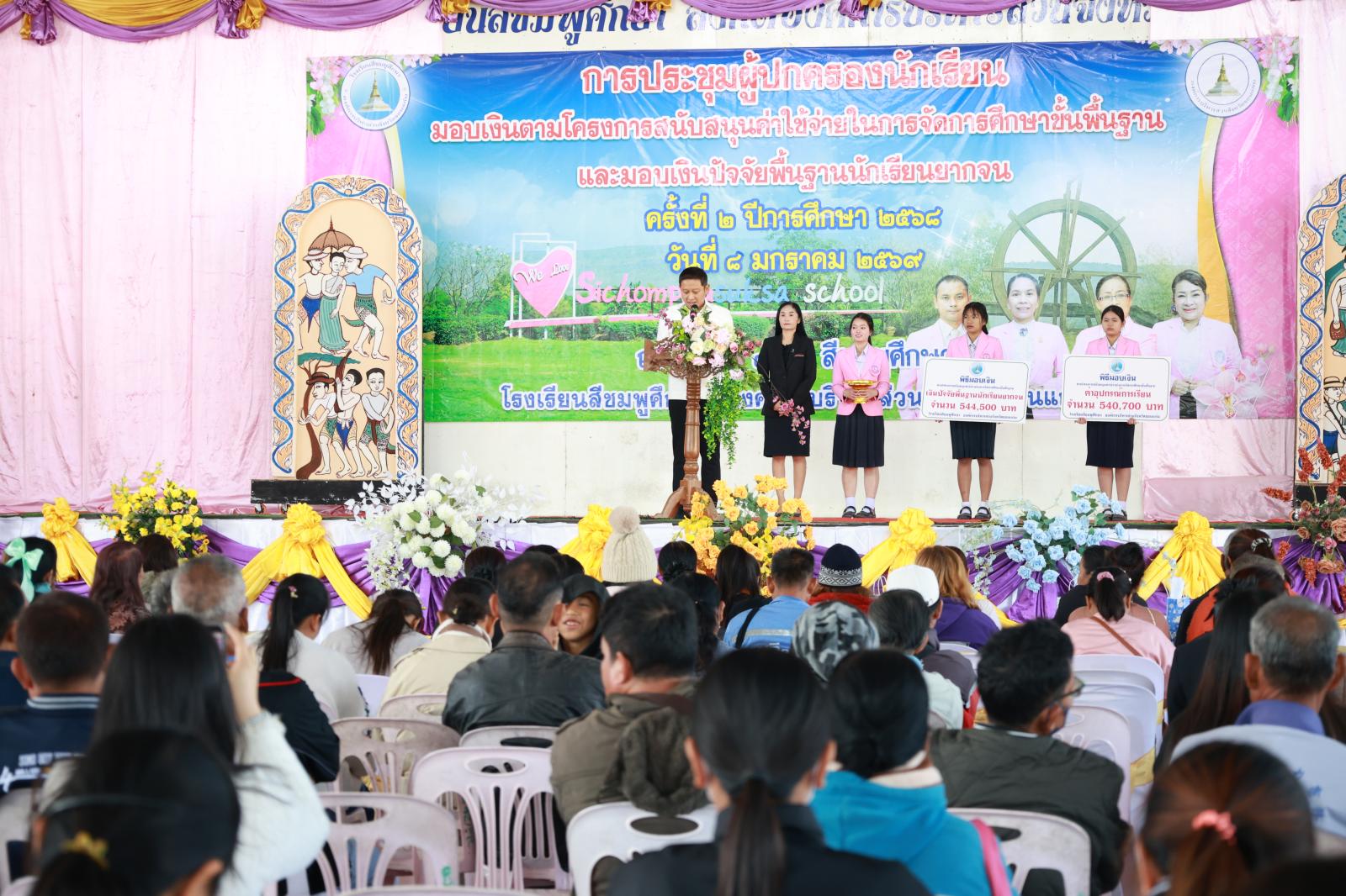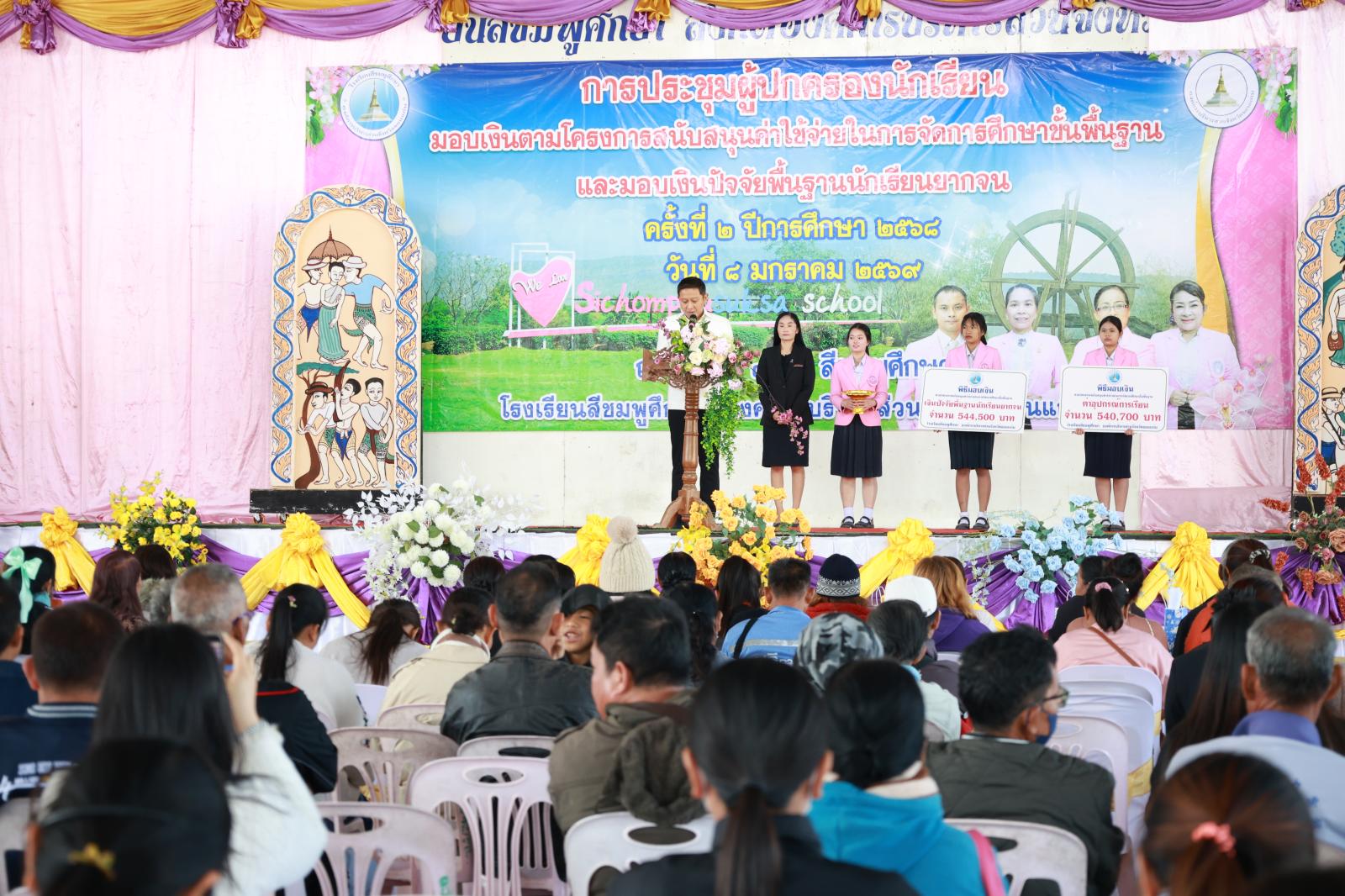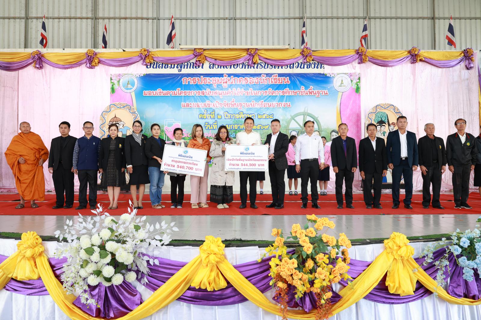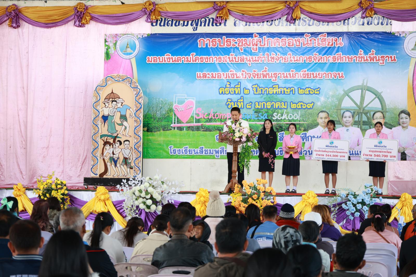 องค์การบริหารส่วนจังหวัดขอนแก่นมอบเงินสนับสนุนค่าใช้จ่ายการศึกษาขั้นพื้นฐาน ค่าอุปกรณ์การเรียนและเงินปัจจัยพื้นฐานสำหรับนักเรียน โรงเรียนสีชมพูศึกษา