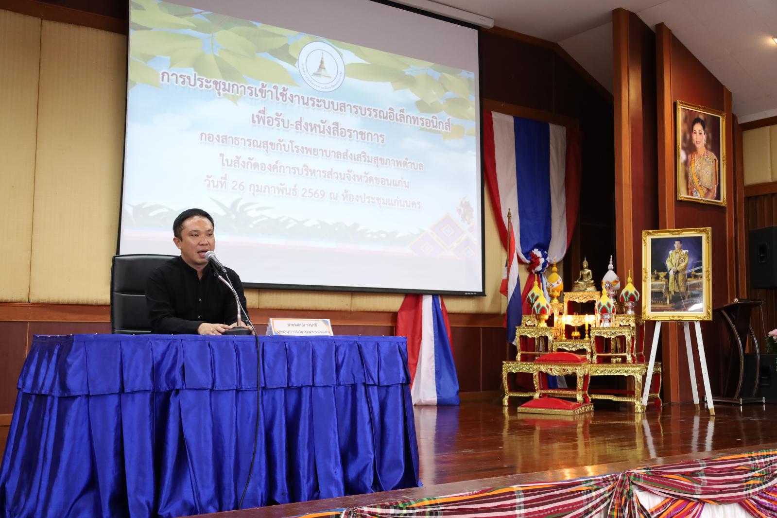 เมื่อวันที่ 26 กุมภาพันธ์ 2569 เวลา 09.30 น. องค์การบริหารส่วนจังหวัดขอนแก่น โดย นายวัฒนา ช่างเหลา นายก อบจ.ขอนแก่น มอบหมายให้ นายทศภณ วงษาลี เลขานุการนายก อบจ.ขอนแก่น เป็นประธานการประชุมการเข้าใช้งานระบบสารบรรณอิเล็กทรอนิกส์ (E-office) เพื่อเพิ่มประสิทธิภาพการรับ-ส่งหนังสือราชการระหว่างกองสาธารณสุขกับสำนักงานและโรงพยาบาลส่งเสริมสุขภาพตำบล (รพ.สต.) ในสังกัดองค์การบริหารส่วนจังหวัดขอนแก่นทุกแห่ง (รุ่นที่2)
