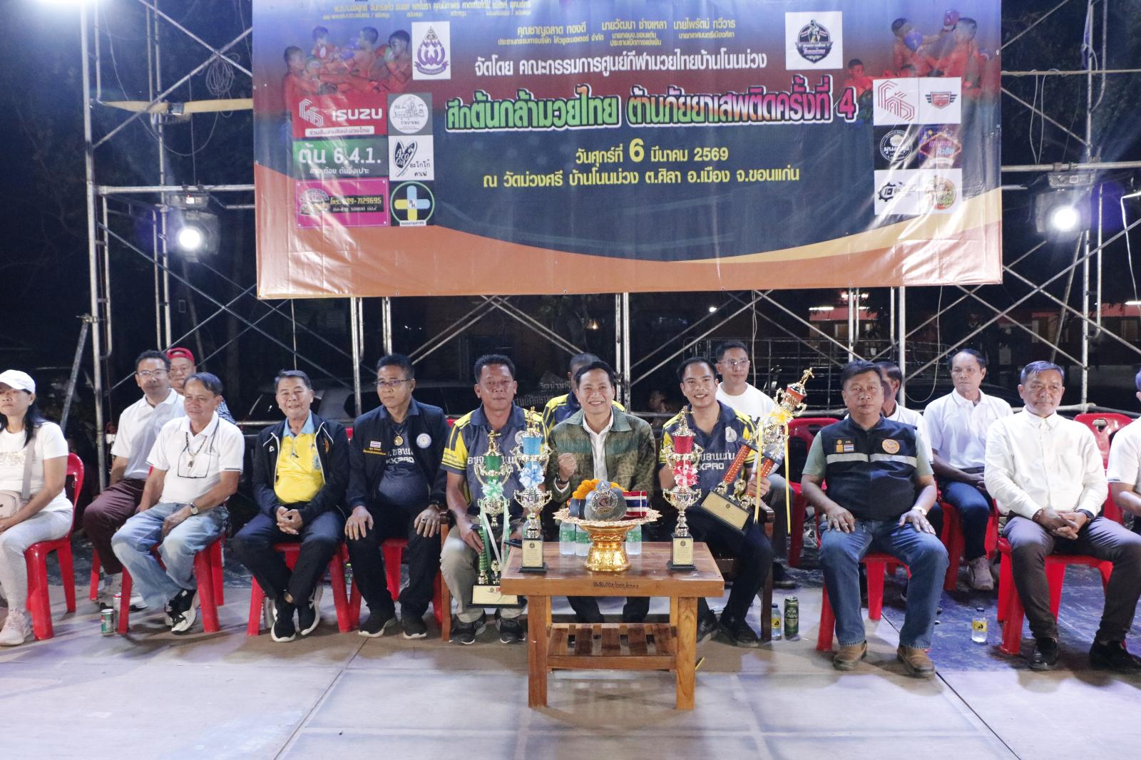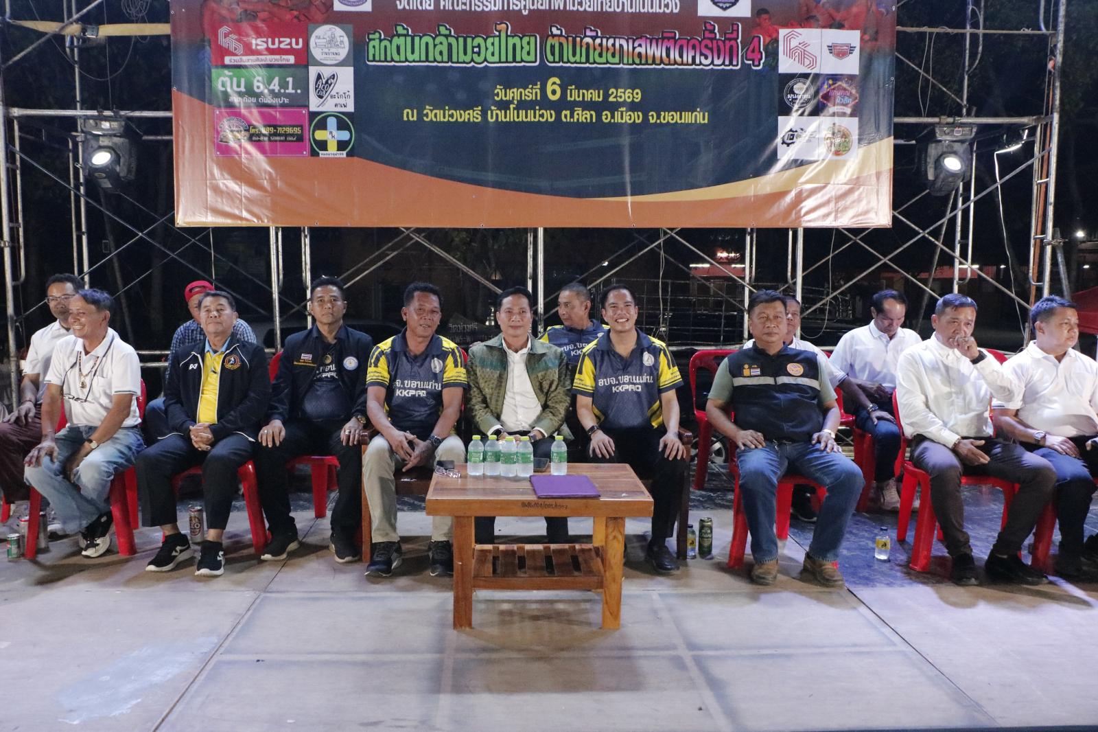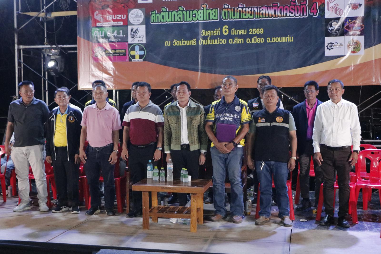 เมื่อวันที่ 6 มีนาคม 2569 เวลา 20.00 น. องค์การบริหารส่วนจังหวัดขอนแก่น นำโดย นายวัฒนา ช่างเหลา นายกองค์การบริหารส่วนจังหวัดขอนแก่น มอบหมายให้ นายนาวิน คำเวียง รองนายกองค์การบริหารส่วนจังหวัดขอนแก่น เป็นประธานในพิธีเปิด การแข่งขันมวยไทยต้านภัยยาเสพติด ครั้งที่ 4 โดยมี นายธรรมนูญ ทองบ้านทุ่ม ประธานศูนย์กีฬามวยไทยบ้านโนนม่วง กล่าวรายงาน ในโอกาสนี้ได้รับเกียรติจาก นายจรูญ อ่วยนอก ที่ปรึกษานายก อบจ.ขอนแก่น นายธีระศักดิ์ ผาเหลา ส.อบจ.ขอนแก่น อ.เมือง เขต 4 นายยุทธนา ชูพันธ์ ส.อบจ.ขอนแก่น อ.เมือง เขต 6 นายยุทธภูมิ ตาทอง ส.อบจ.ขอนแก่น อ.เมือง เขต 7 นายไพรรัตน์ ทวีวาร นายกเทศมนตรีเมืองศิลา พร้อมคณะบริหารเทศบาลเมืองศิลา ผู้นำท้องที่ ผู้นำท้องถิ่น เข้าร่วมงานในครั้งนี้ ณ สนามมวยชั่วคราววัดม่วงศรี บ้านโนนม่วง ตำบลศิลา อำเภอเมือง จังหวัดขอนแก่น