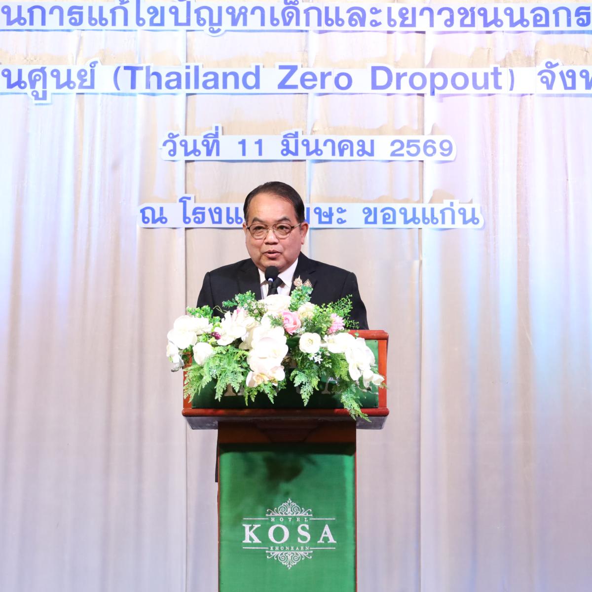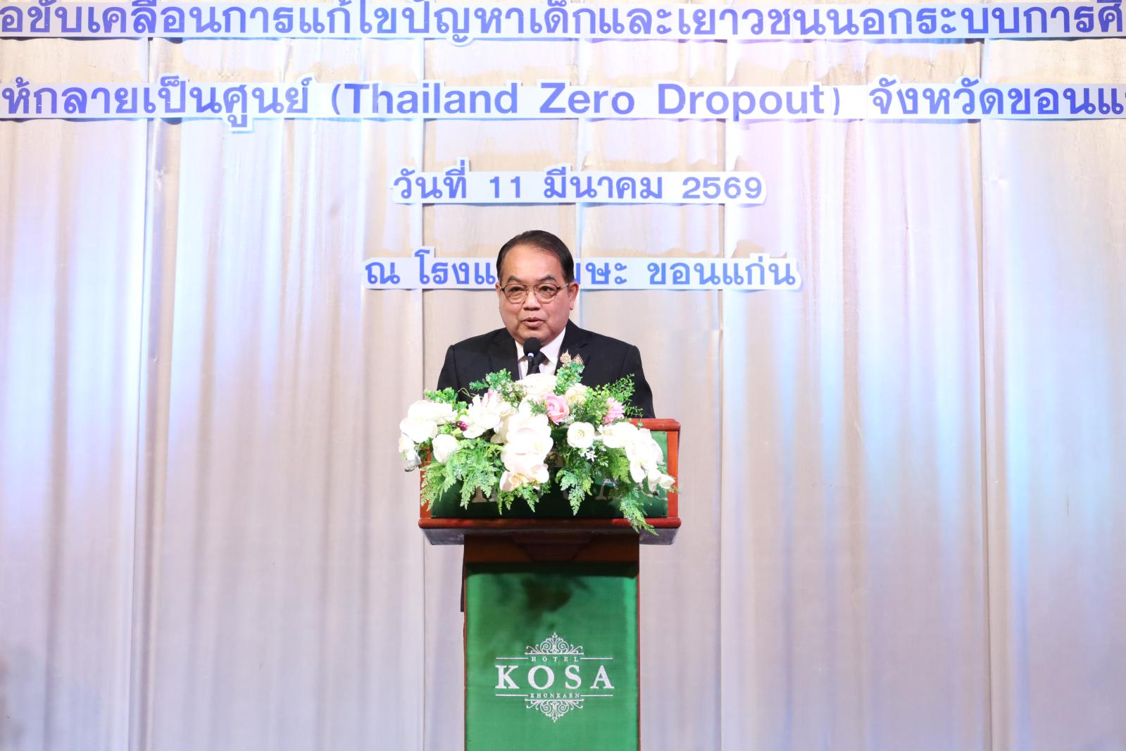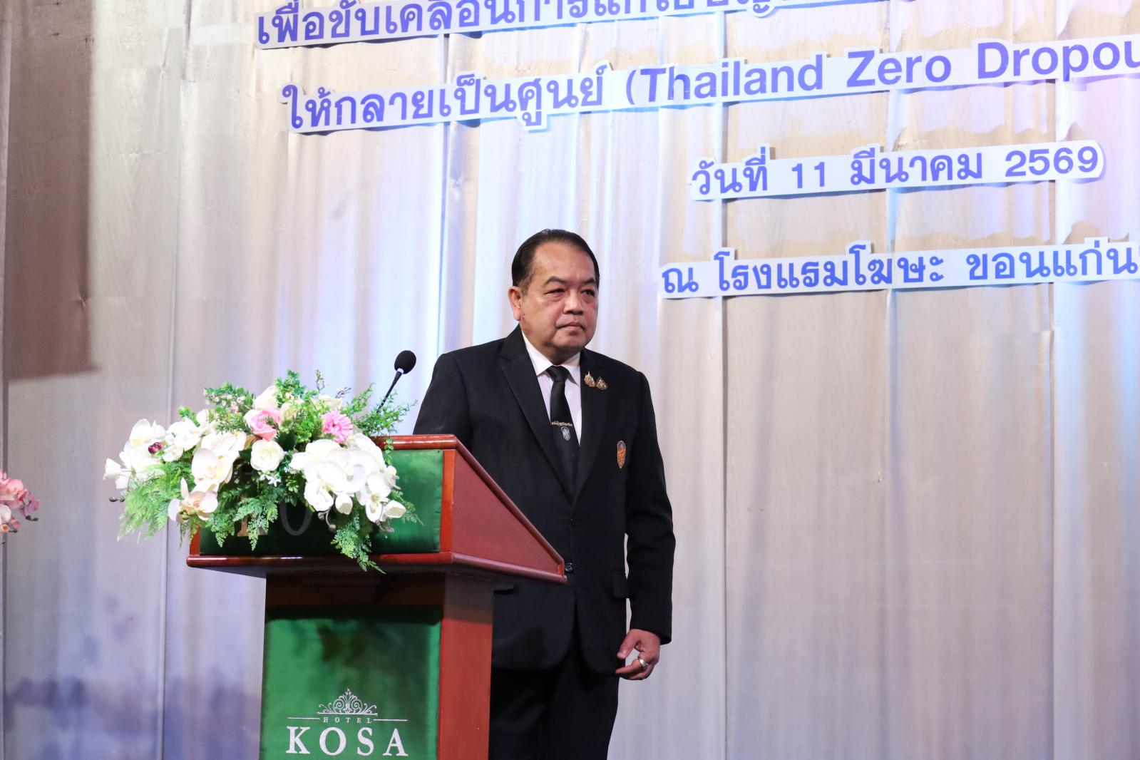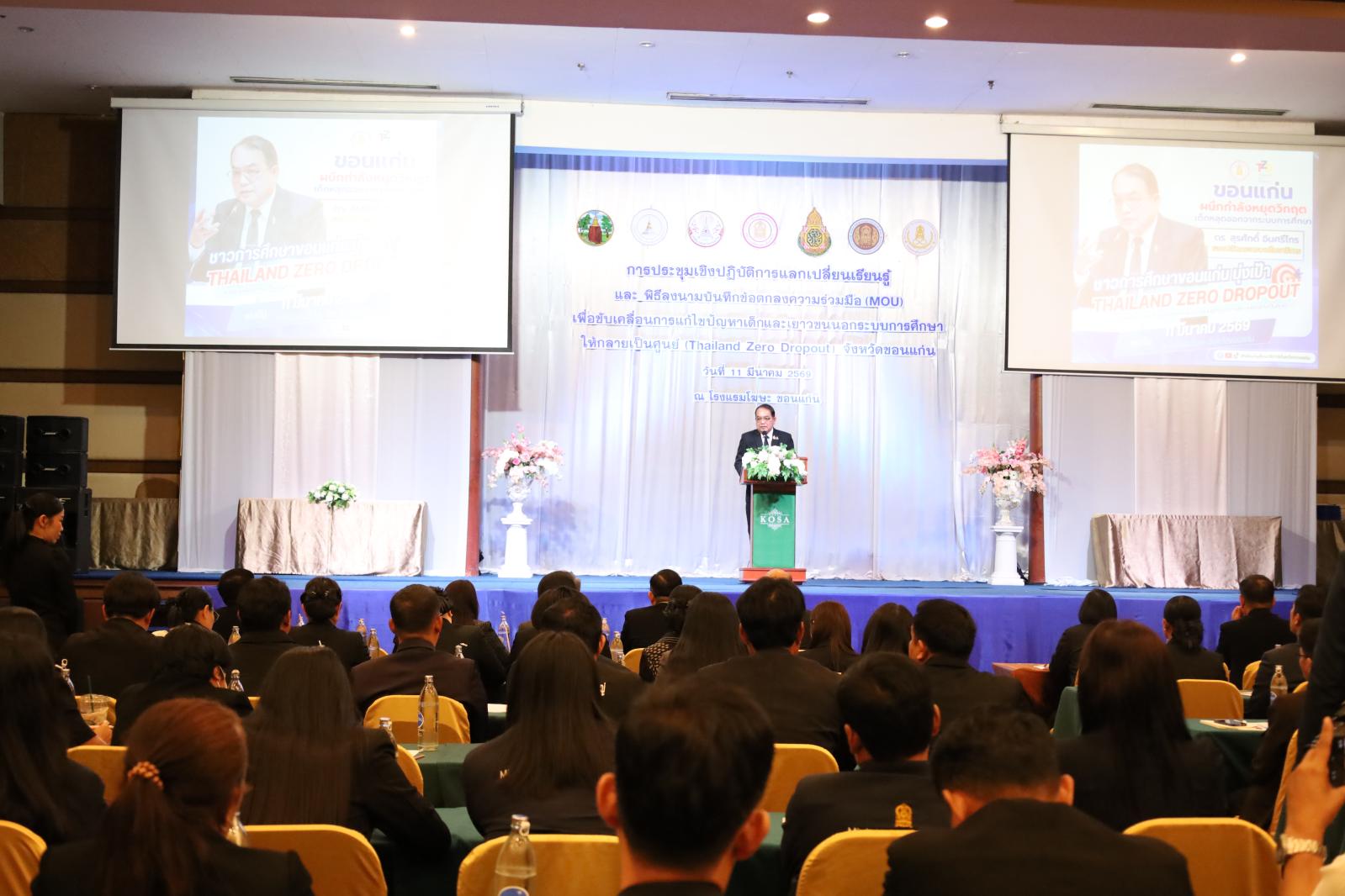 การประชุมครั้งนี้ได้รับเกียรติจาก ดร.สุรศักดิ์ อินศรีไกร รองปลัดกระทรวงศึกษาธิการ เป็นประธานในพิธี นายวัชระ อันโยธา ศึกษาธิการจังหวัดขอนแก่น กล่าวรายงานวัตถุประสงค์ของการจัดงาน เพื่อสร้างความร่วมมือระหว่างหน่วยงานภาครัฐ ภาคการศึกษา และภาคีเครือข่าย ในการร่วมกันขับเคลื่อนนโยบาย “ขอนแก่น Zero Dropout” ลดจำนวนเด็กและเยาวชนที่หลุดจากระบบการศึกษาให้เป็นศูนย์
