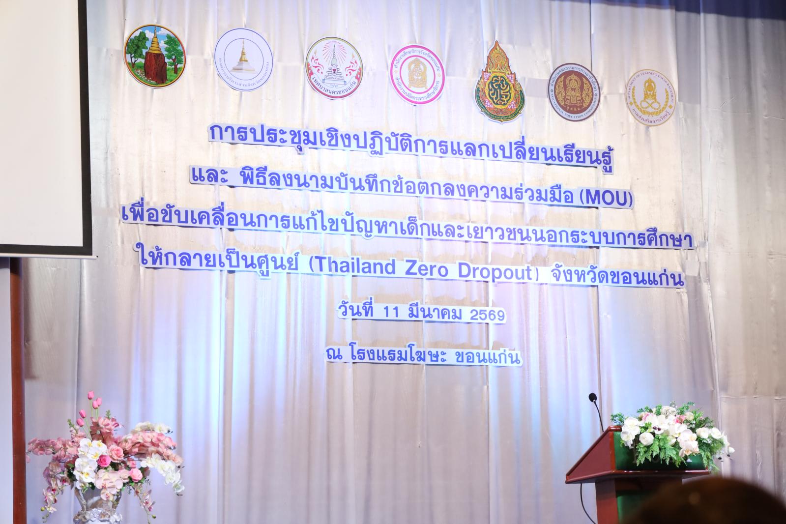 เมื่อวันที่ 11 มีนาคม 2569 เวลา 09.30 น. องค์การบริหารส่วนจังหวัดขอนแก่น โดย นายวัฒนา ช่างเหลา นายกองค์การบริหารส่วนจังหวัดขอนแก่น มอบหมายให้ นาย นาวิน คำเวียง รองนายกองค์การบริหารส่วนจังหวัดขอนแก่น เข้าร่วม การประชุมเชิงปฏิบัติการแลกเปลี่ยนเรียนรู้ พร้อมพิธีลงนามบันทึกข้อตกลงความร่วมมือ (MOU) ภายใต้โครงการ “Thailand Zero Dropout จังหวัดขอนแก่น” เพื่อขับเคลื่อนการแก้ไขปัญหาเด็กและเยาวชนนอกระบบการศึกษา ให้สามารถกลับเข้าสู่ระบบการศึกษาได้อย่างทั่วถึงและยั่งยืน