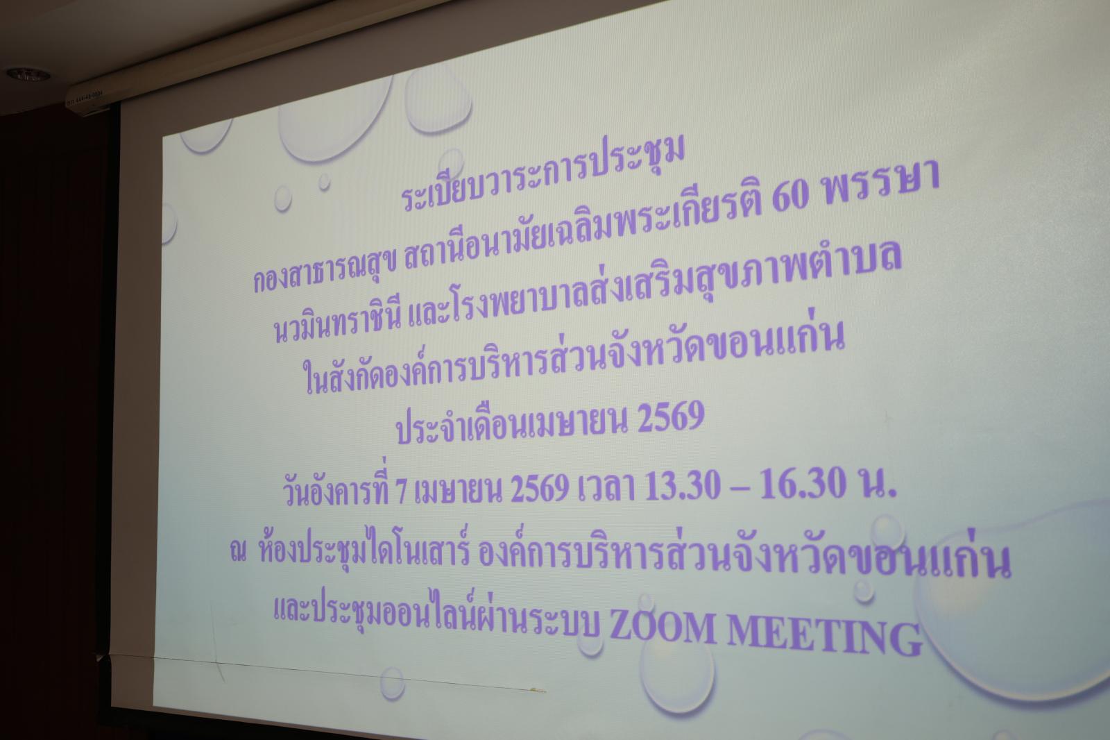 เป็นประธานในการประชุมกองสาธารณสุข สถานีอนามัยเฉลิมพระเกียรติ 60 พรรษา นวมินทราชินีและโรงพยาบาลส่งเสริมสุขภาพตำบล ในสังกัดองค์การบริหารส่วนจังหวัดขอนแก่น ทุกแห่ง ประจำเดือนเมษายน 2569