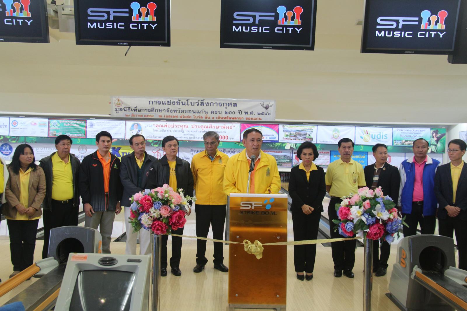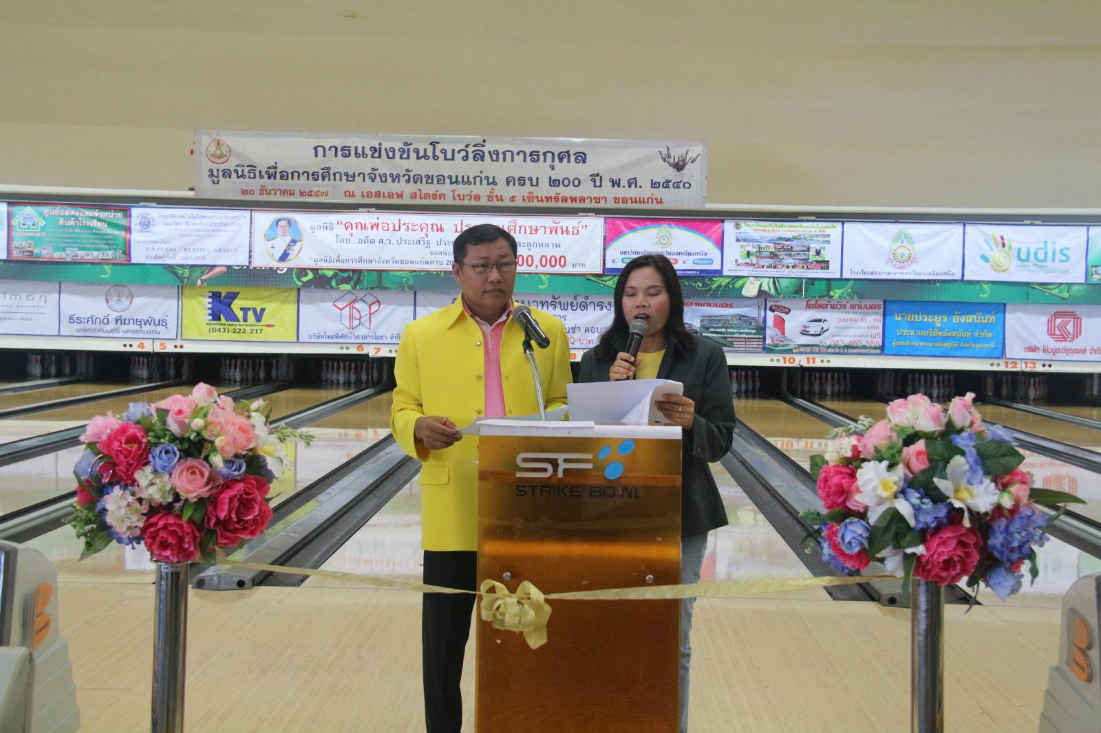 การแข่งขันโบว์ลิ่งการกุศลเพื่อการศึกษามีวัตถุประสงค์เพื่อส่งเสริมและสนับสนุนการศึกษาของเด็กนักเรียน เยาวชน และพระภิกษุ สามเณร ที่มีภูมิลำเนาอยู่ในจังหวัดขอนแก่นและมีฐานะยากจนให้มีโอกาสได้รับการศึกษาต่อ ในทุกระดับอย่างต่อเนื่องจนถึงระดับอุดมศึกษา ซึ่งการแข่งขันในครั้งนี้ องค์การบริการส่วนจังหวัดขอนแก่น มอบถ้วยรางวัลเกียรติยศ และมอบเงินสนับสนุนการแข่งขัน จำนวน ๒๐,๐๐๐ บาท โดยมี รองผู้ว่าราชการจังหวัดขอนแก่น นายศิวาโรจน์ มุ่งหมายผล เป็นประธานรับมอบ