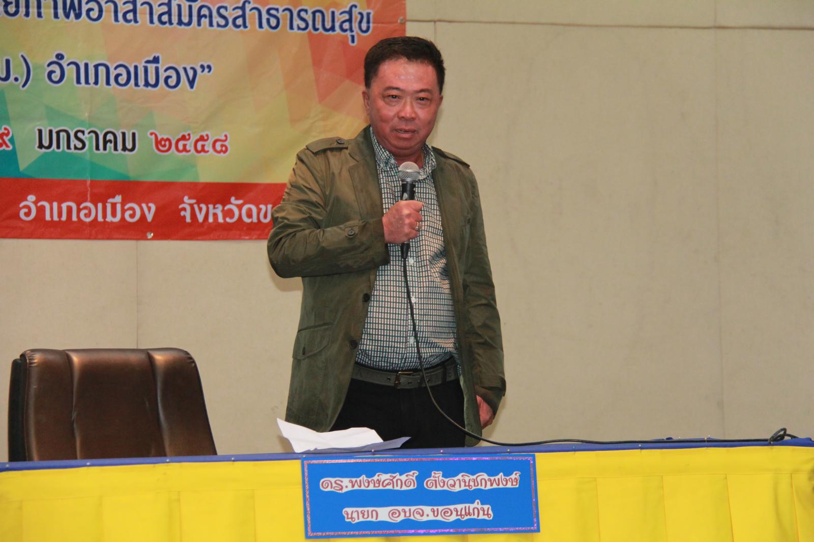 เมื่อวันที่ 2 กุมภาพันธ์ 2558 เวลา 11.00 น. ณ ศาลาประชาคมจังหวัดขอนแก่น องค์การบริหารส่วนจังหวัดขอนแก่น ร่วมกับ สาธารณสุขจังหวัดขอนแก่น ได้จัดโครงการส่งเสริมพัฒนาศักยภาพ อาสาสมัครสาธารณสุข ประจำหมู่บ้าน (อสม.) ประจำปี 2558 เขต อำเภอเมือง ขึ้น โดยมี อสม.เข้าร่วมรับการอบรมจำนวนมาก เพื่อเป็นการพัฒนาระบบสุขภาพชุมขนให้เข้มแข็ง ทำให้เกิดการพึ่งตนเองของชุมชนทางด้านสุขภาพ ทุกกลุ่มเป้าหมายได้รับการดูแลสุขสภาพ อันส่งผลต่อประชาชนมีสุขภาพดีของประชาชน จึงได้จัดทำโครงการส่งเสริมพัฒนาศักยภาพ อาสาสมัครสาธารณสุข ประจำหมู่บ้าน โดยได้รับเกียรติจาก ดร.พงษ์ศักดิ์ ตั้งวานิชกพงษ์ นายกองค์การบริหารส่วนจังหวัดขอนแก่น เดินทางมาเป็นประธานในพิธีเปิดการอบรม