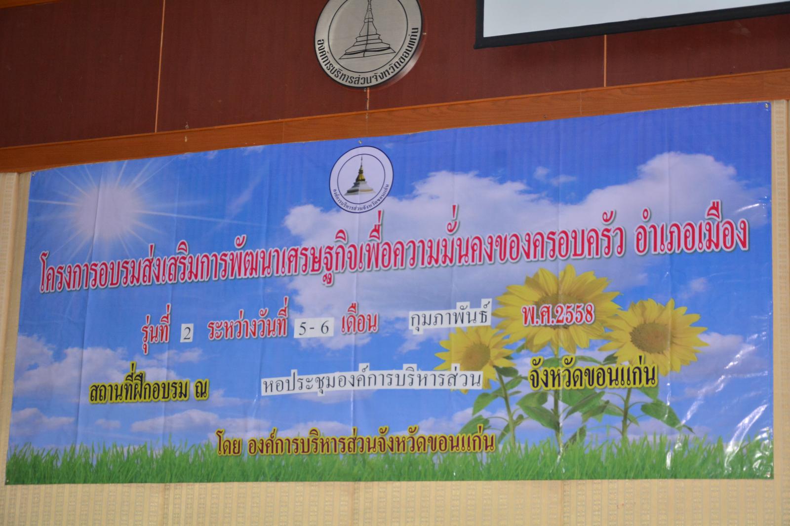 เมื่อวันที่ 5 กุมภาพันธ์ 2558 ดร.พงษ์ศักดิ์ ตั้งวานิชกพงษ์ นายกองค์การบริหารส่วนจังหวัดขอนแก่น เป็นประธานในพิธีเปิดโครงการส่งเสริมการพัฒนาเศรษฐกิจ เพื่อความมั่นคงของครอบครัว ที่ห้องประชุมองค์การบริหารส่วนจังหวัดขอนแก่น โดยมี นายวุฒิพร ศรีมังกรแก้ว ส.อบจ.ขอนแก่น อ.เมือง เขต 2 ให้การต้อนรับ