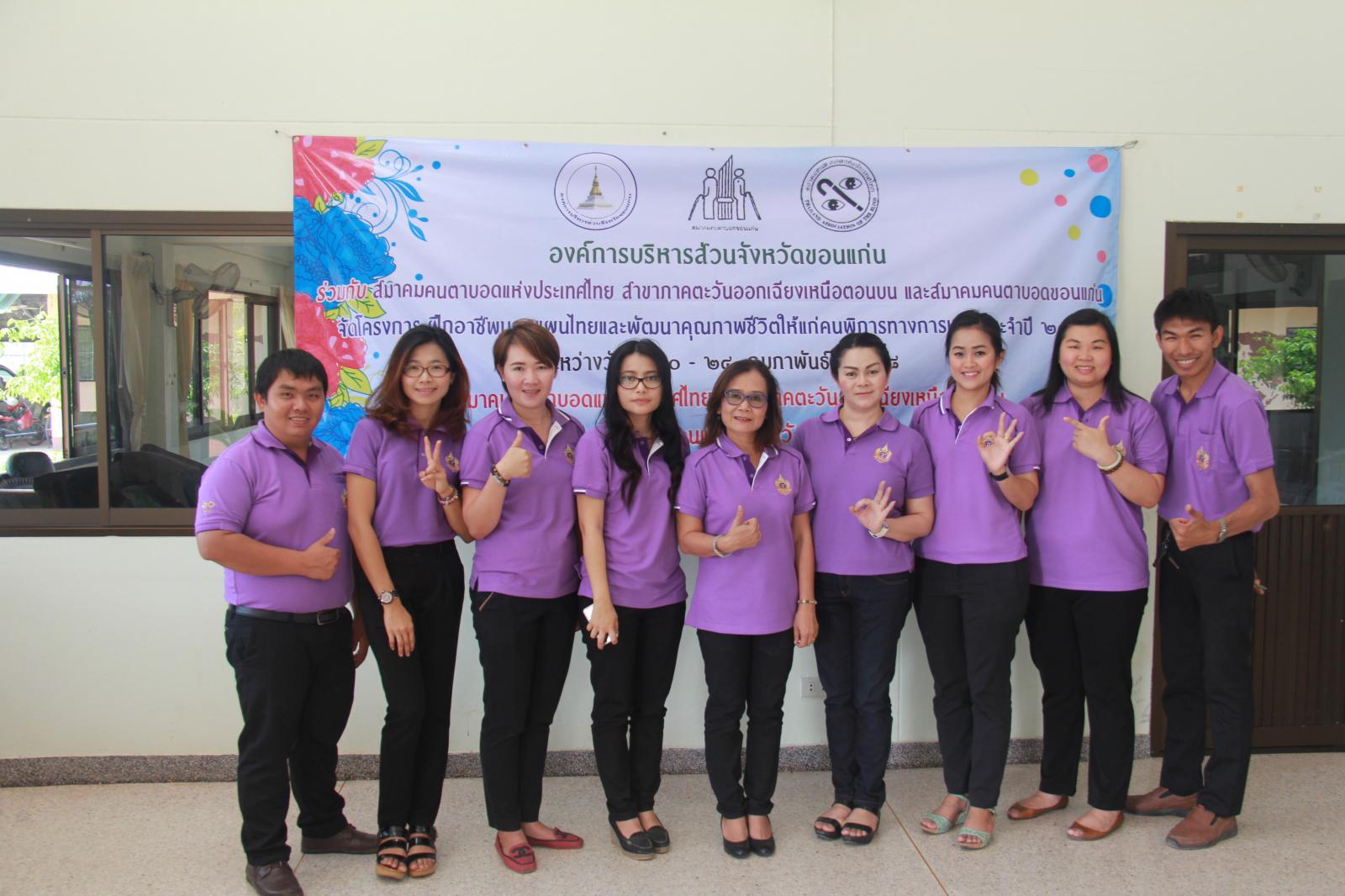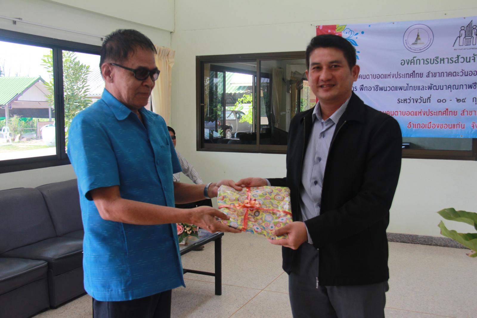 เมื่อวันที่ ๒๔ กุมภาพันธ์ ๒๕๕๘ นายก อบจ.ขอนแก่น ดร.พงษ์ศักดิ์ ตั้งวานิชกพงษ์ มอบหมายให้ รองนายก อบจ.ขอนแก่น นายสิทธิกุล ภูคำวงศ์ เป็นประธานในพิธีปิดโครงการฝึกอาชีพนวดแผนไทยและพัฒนาคุณภาพชีวิตให้แก่ผู้พิการทางการเห็น โดยมี หัวหน้าสำนักปลัดองค์การบริหารส่วนจังหวัด นายวรเวทย์ ดิเรกศรี เป็นผู้กล่าวรายงานมีวัตถุประสงค์เพื่อสร้างงาน สร้างอาชีพ ให้คนพิการทางการเห็น ได้มีความรู้ มีทักษะในการนวดแผนไทย สามารถนำไปประกอบอาชีพเลี้ยงตนเองและครอบครัว ตลอดจนสามารถพึ่งพาตนเองได้อย่างยั่งยืนไม่เป็นภาระต่อผู้อื่น จัดฝึกอบรมให้แก่ผู้พิการทางการเห็น จำนวน 20 ราย ในระหว่างวันที่ ๑๐ – ๒๔ กุมภาพันธ์ ๒๕๕๘ ณ ศูนย์ส่งเสริมและพัฒนาคุณภาพชีวิตคนพิการภาคตะวันออกเฉียงเหนือ บ้านไก่นา ต.สำราญ อ.เมืองขอนแก่น จ.ขอนแก่น