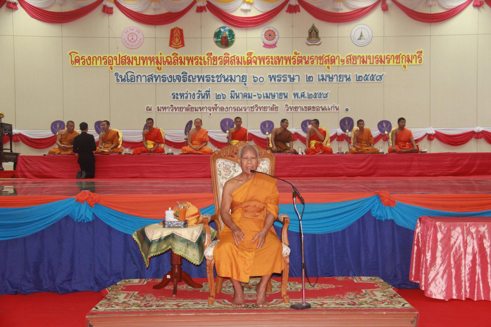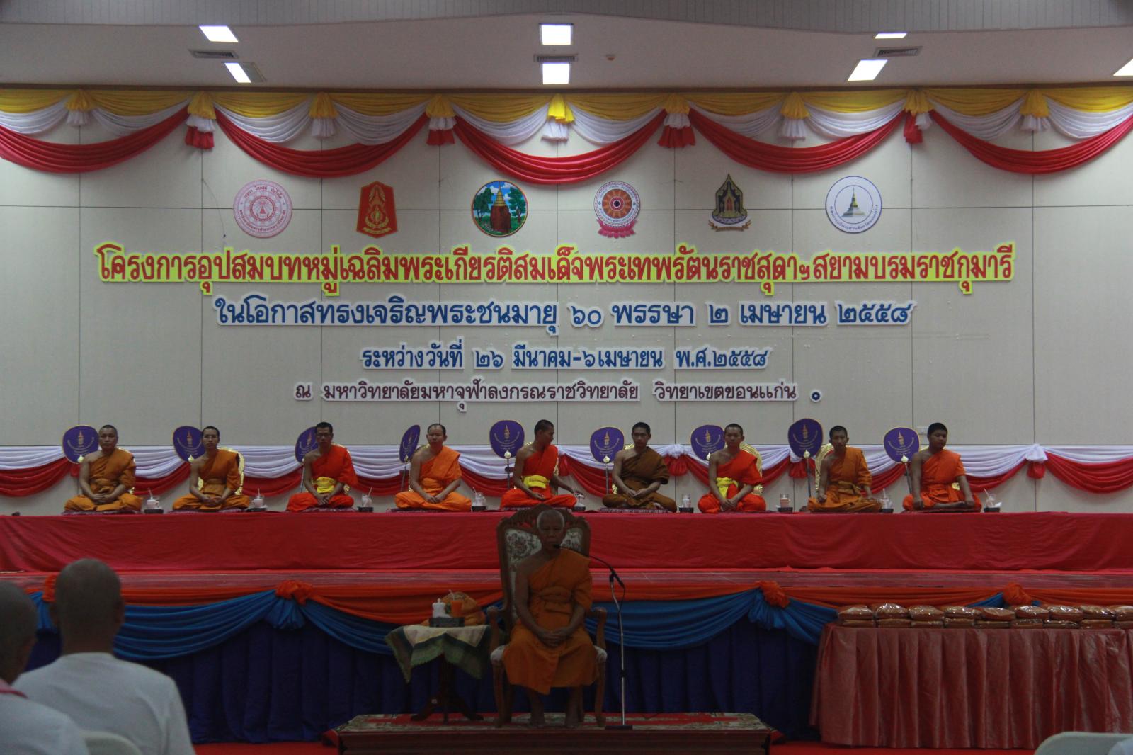 ในวันที่ 28 มีนาคม 2558 นายก อบจ.ขอนแก่น ดร.พงศักดิ์ ตั้งวานิชกพงษ์ มอบหมายให้รองนายก อบจ.ขอนแก่น นายสิทธิกุล ภูคำวงศ์ ร่วมโครงการอุปสมบทหมู่เฉลิมพระเกียรติสมเด็จพระเทพรัตนราชสุดาฯ สยามบรมราชกุมารี พร้อมเป็นประธานมอบเครื่องอัฐบริขารแก่นาค จำนวน 61 นาค ณ มหาวิทยาลัย มหาจุฬาลงกรราชวิทยาลัย วิทยาเขตขอนแก่น ในโอกาสนี้มีผู้ว่าราชการจังหวัดขอนแก่น นายกำธร ถาวรสถิตย์ เป็นประธานมอบผ้าไตร โดยมี พระราชประสิทธิคุณ รองเจ้าคณะจังหวัดขอนแก่น เป็นประธานฝ่ายสงฆ์ และพระครูสุวิธานพัฒนบัณฑิต,ดร. รองอธิการบดี มหาวิทยาลัยมหาจุฬาลงกรณราชวิทยาลัย วิทยาเขตขอนแก่น รองเจ้าคณะจังหวัดขอนแก่นฝ่ายเผยแผ่ ร่วมเป็นเกียรติในพิธี