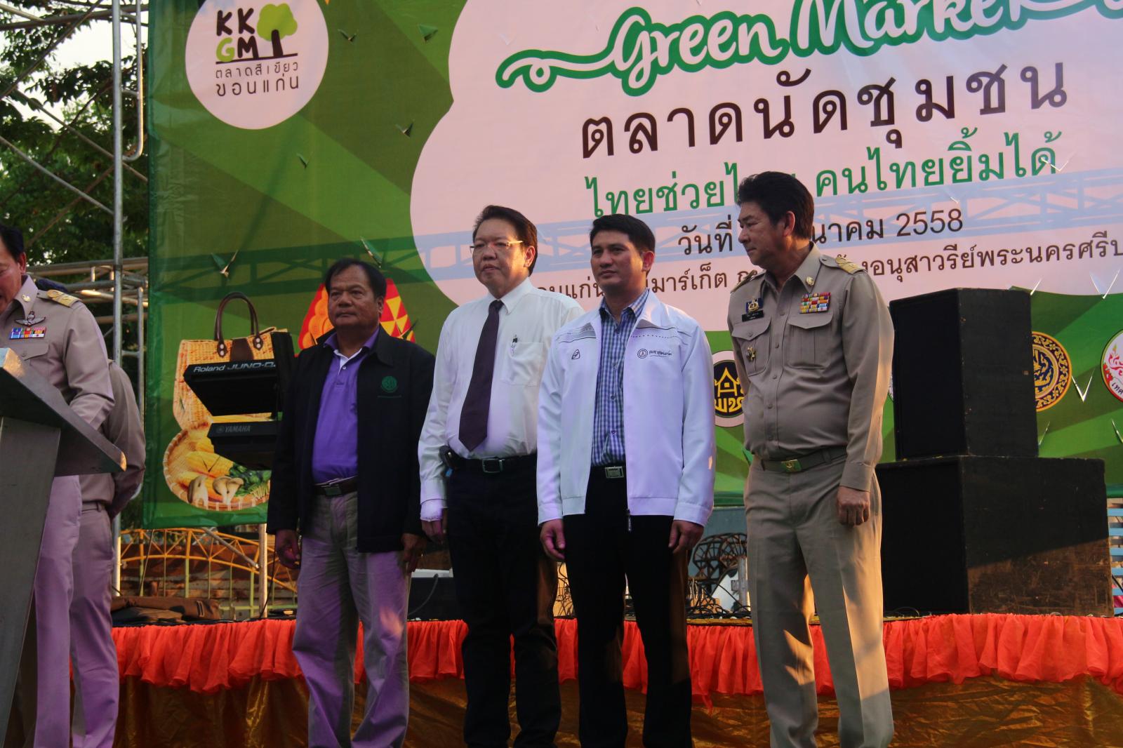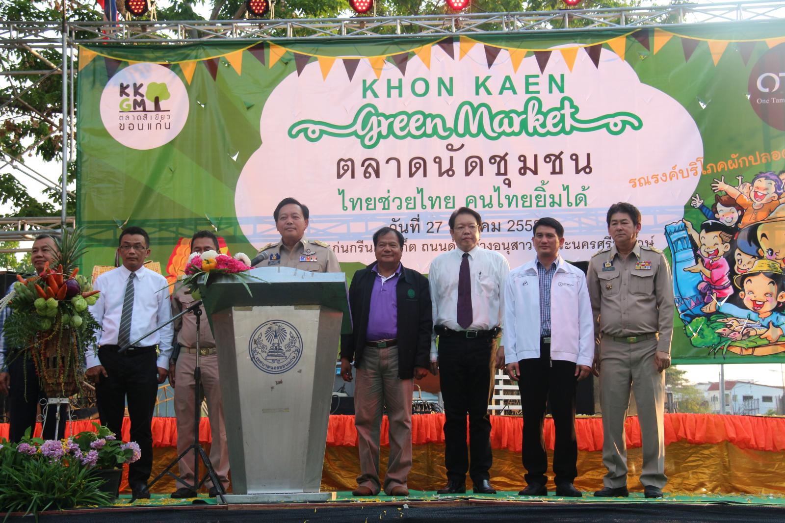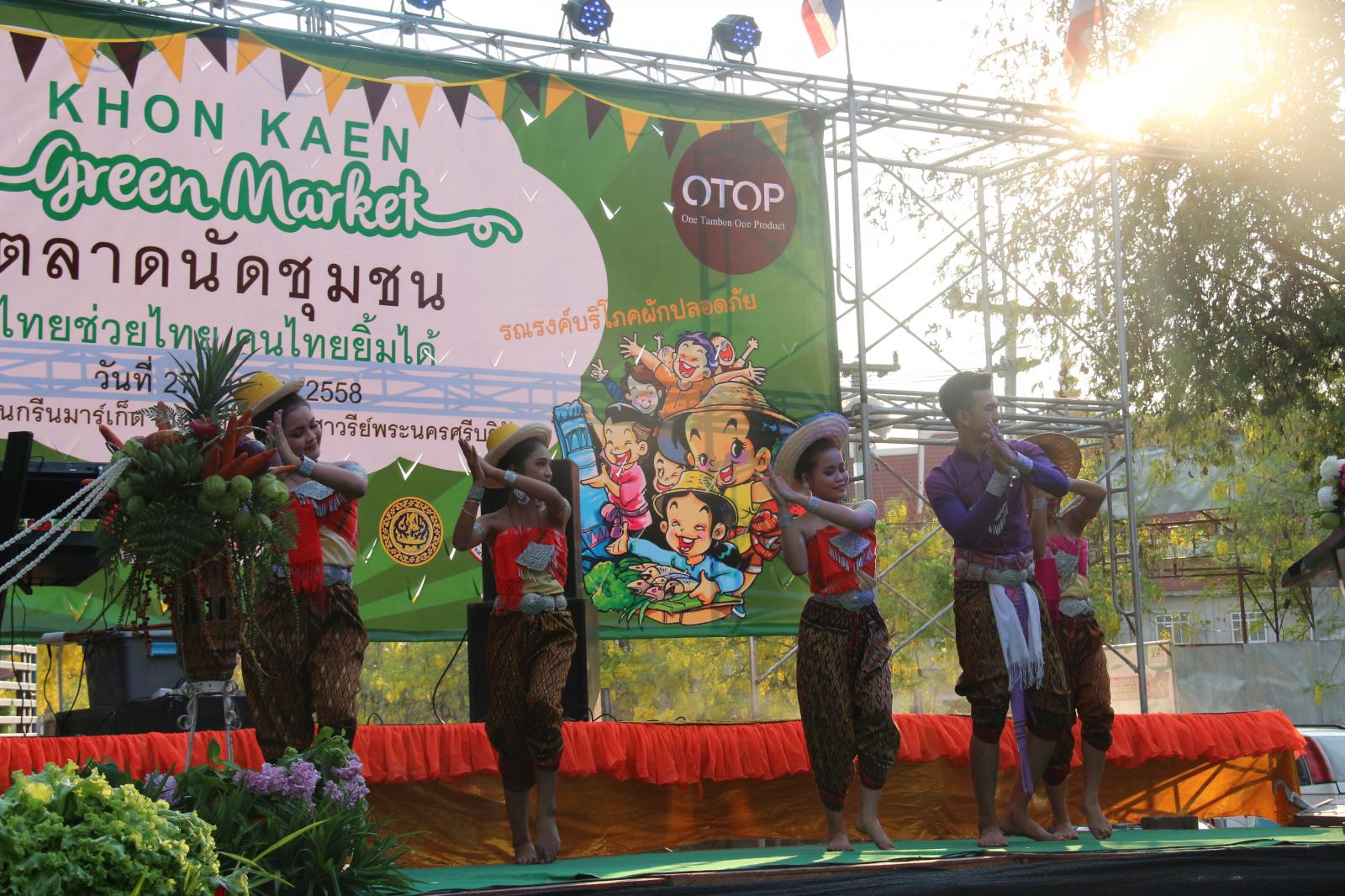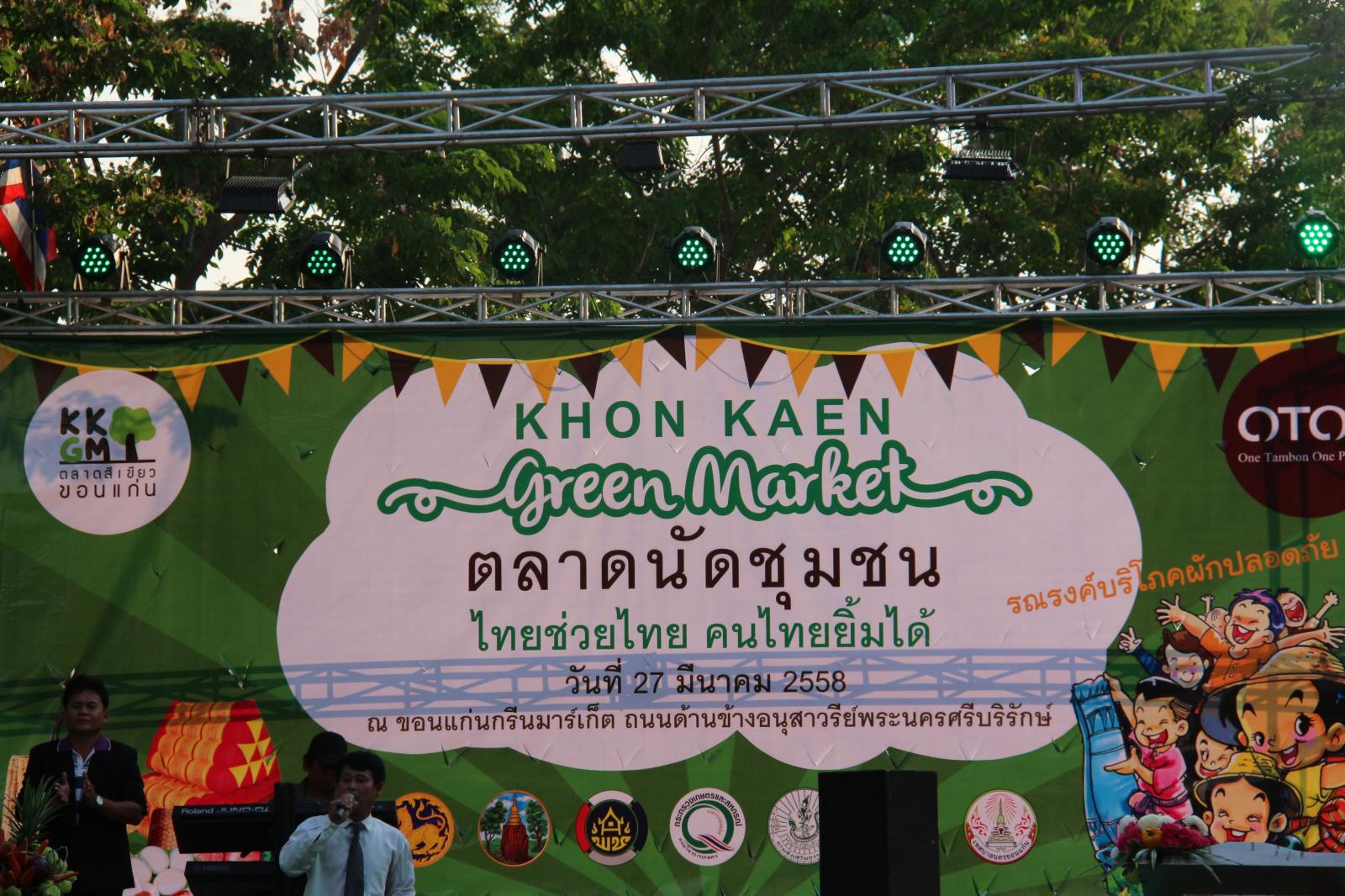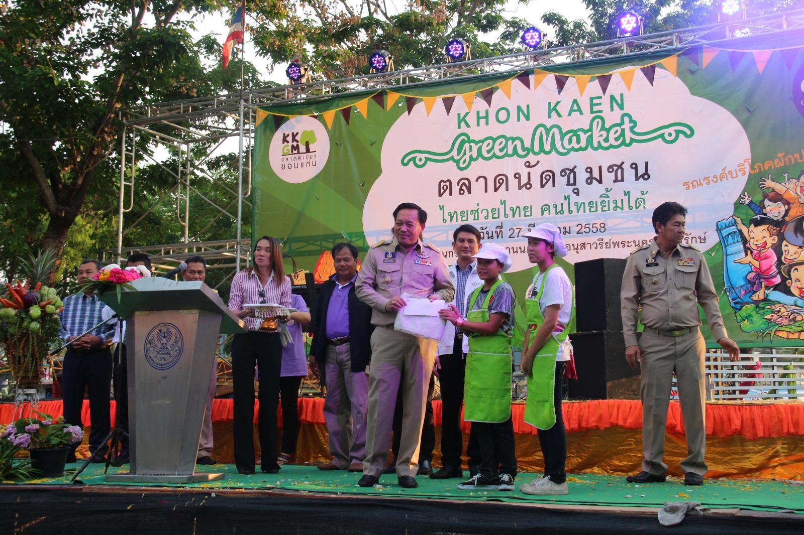 เมื่อวันที่ ๒๗ มีนาคม ๒๕๕๘ นายก อบจ.ขอนแก่น ดร.พงษ์ศักดิ์ ตั้งวานิชกพงษ์ มอบหมายให้ รองนายก อบจ.ขอนแก่น นายสิทธิกุล ภูคำวงศ์ ร่วมพิธีเปิดงาน “ตลาดนัดชุมชน ไทยช่วยไทย คนไทยยิ้มได้” มีวัตถุประสงค์ เพื่อลดความเหลื่อมล้ำของสังคม และสร้างโอกาสการเข้าถึงบริการของรัฐ โดยดำเนินการให้ความช่วยเหลือแก่ผู้ประกอบการอาชีพทางการเกษตร ผู้ประกอบการ OTOP ซึ่งมีปัญหาเกี่ยวกับการจำหน่ายผลผลิตและผลิตภัณฑ์ได้ ในราคาที่ไม่เป็นธรรม เป็นแหล่งจำหน่ายสินค้าโดยตรงไม่ผ่านคนกลาง ตลอดจนแก้ไขปัญหาค่าครองชีพของประชาชน โดยมี ผู้ว่าราชการจังหวัดขอนแก่น นายกำธร ถาวรสถิตย์ เป็นประธานในพิธี ณ ขอนแก่นกรีนมาร์เก็ต ถนนบริเวณด้านข้างอนุสาวรีย์พระนครศรีบริรักษ์ ริมบึงแก่นนคร อ.เมืองขอนแก่น จ.ขอนแก่น