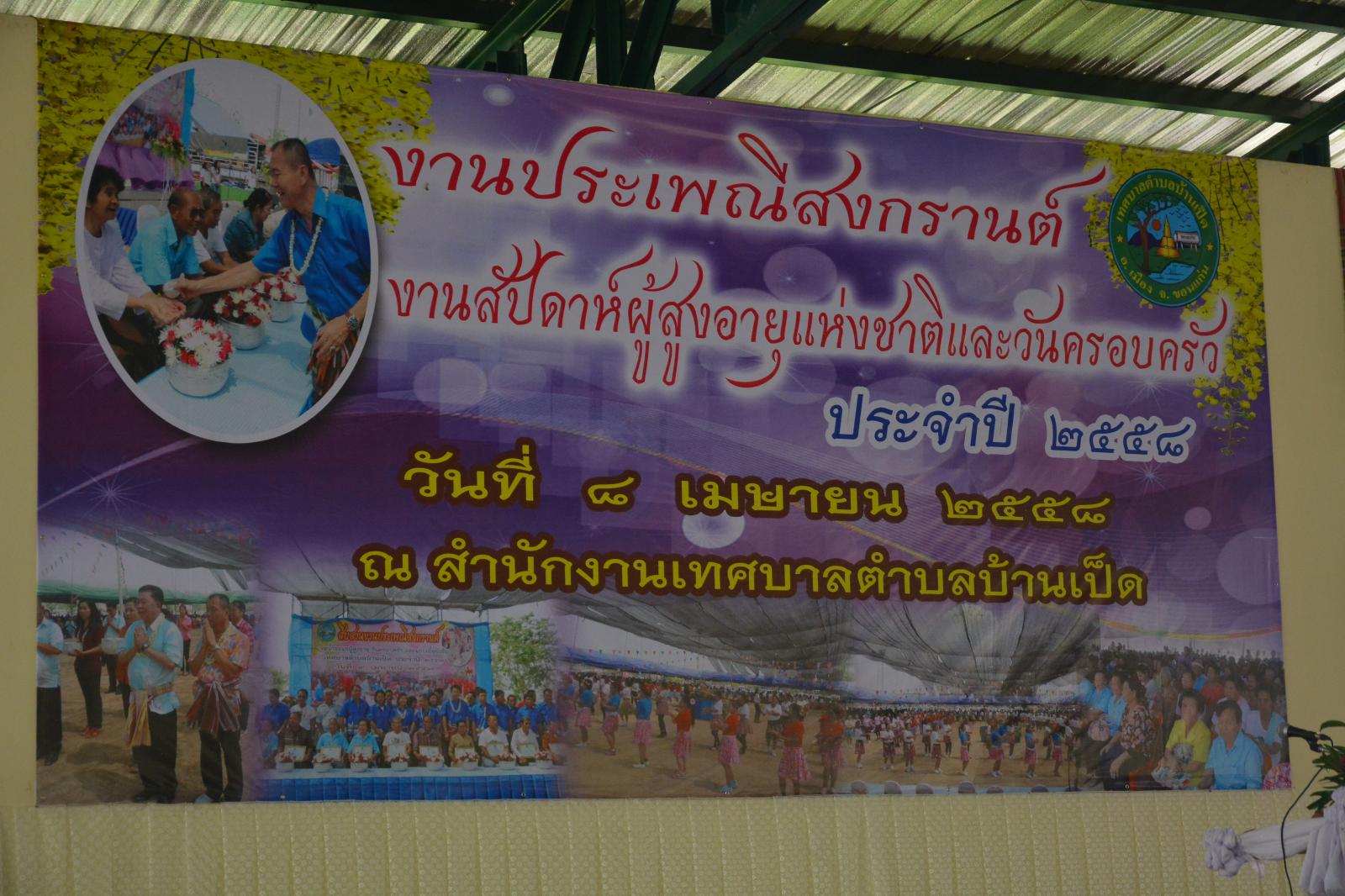 วันที่ 8 เมษายน 2558 เวลา 08.30 น. ดร.พงษ์ศักดิ์ ตั้งวานิชกพงษ์ นายกองค์การบริหารส่วนจังหวัดขอนแก่น ได้ให้เกียรติเป็นประธานในพิธีเปิดงานประเพณีสงกรานต์ งานสัปดาห์ผู้สูงอายุแห่งชาติและวันครอบครัว ประจำปี 2558 ณ อาคารอเนกประสงค์ไพศาล เทศบาลตำบลบ้านเป็ด อ.เมืองขอนแก่น โดยมี นายไพศาล จิตตะมัย นายกเทศมนตรีตำบลบ้านเป็ด เป็นผู้กล่าวรายงาน โดยมีกิจกรรมมอบใบประกาศเกียรติคุณให้กับผู้สูงอายุดีเด่น กิจกรรมรดน้ำขอพรผู้สูงอายุ และสรงน้ำพระพุทธรูป กิจกรรมการแสดงของชมรมผู้สูงอายุ เทศบาลตำบลบ้านเป็ด เป็นต้น