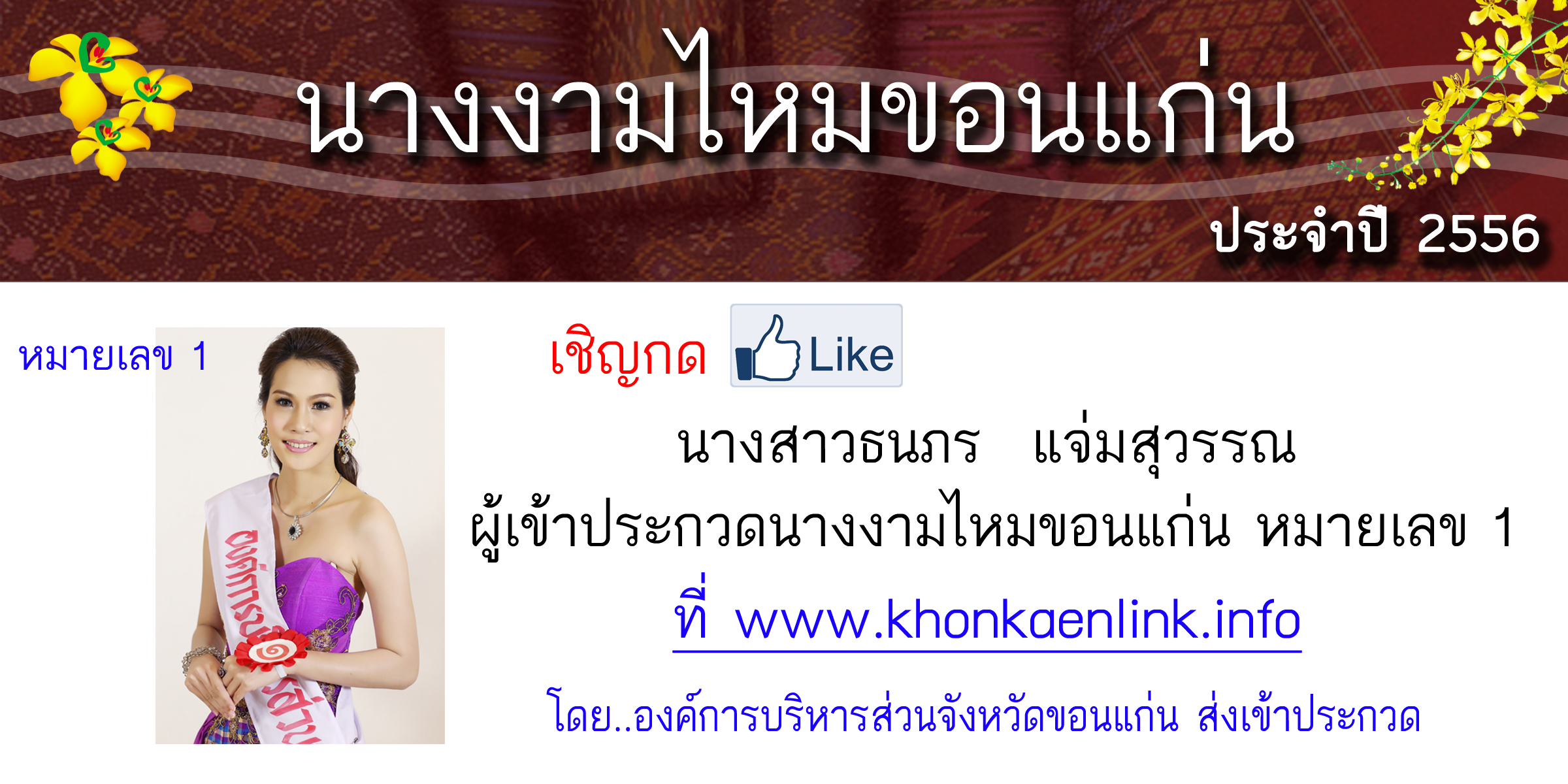 เชิญกด LIKE นางงามไหมขอนแก่น หมายเลข 1 โดย องค์การบริหารส่วนจังหวัดขอนแก่นส่งเข้าประกวด ที่ www.khonkaenlink.info