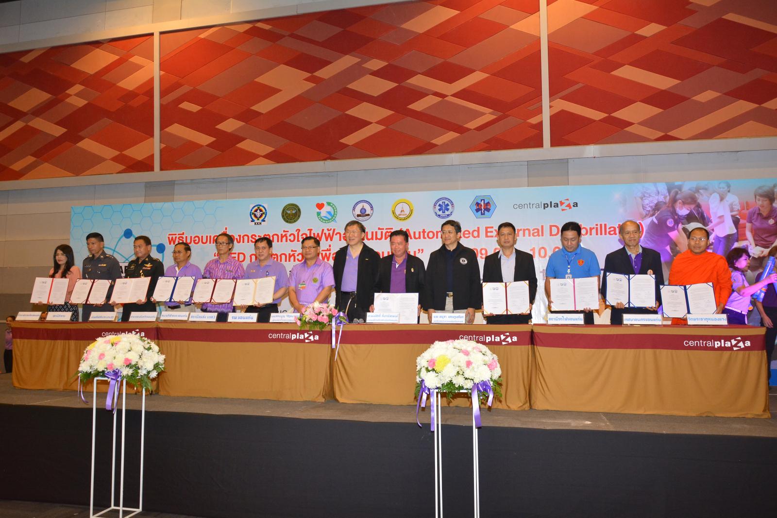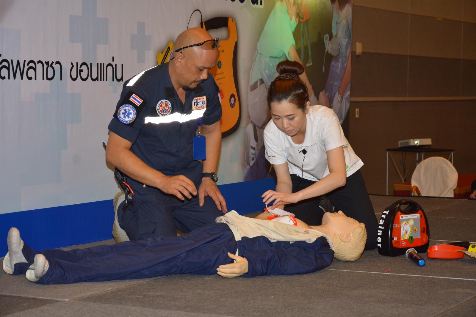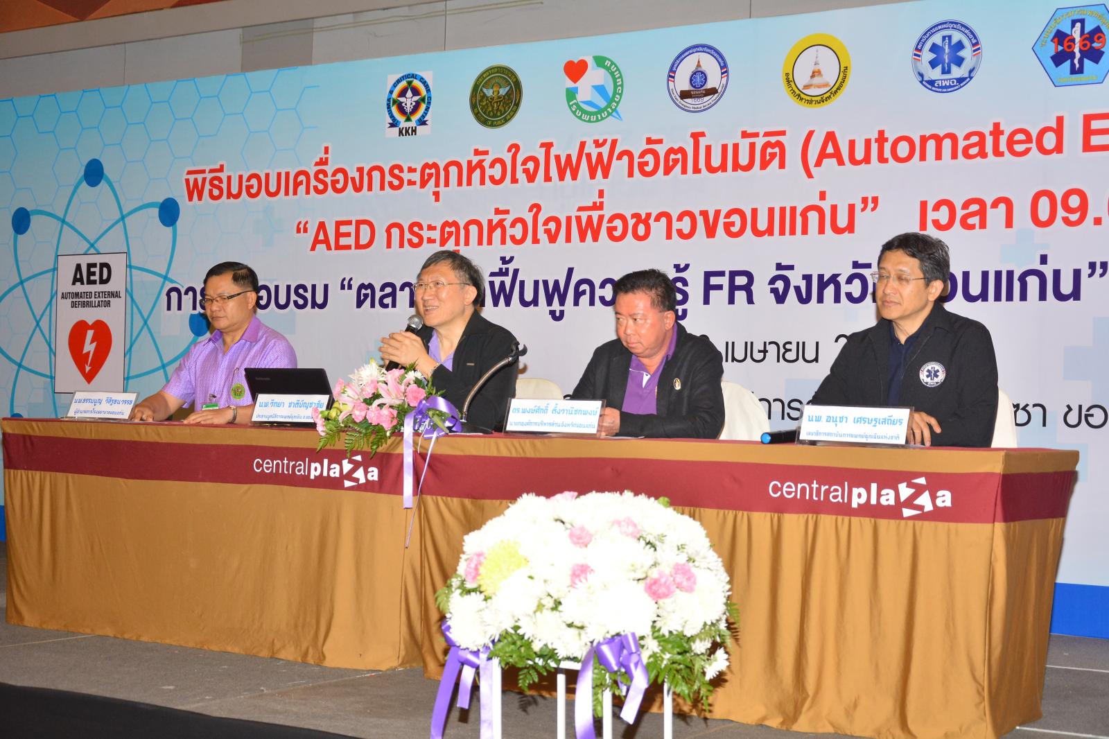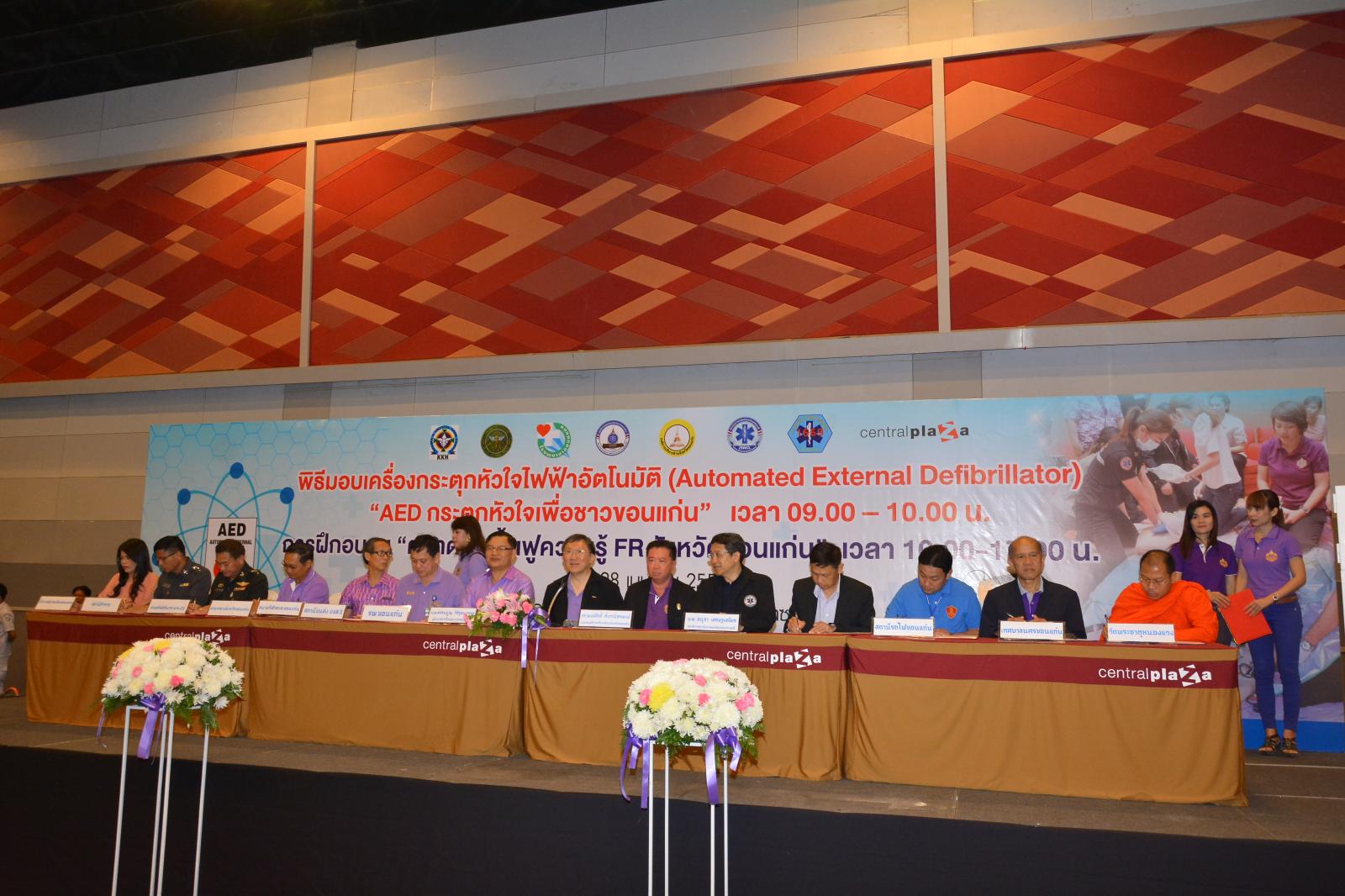 องค์การบริหารส่วนจังหวัดขอนแก่น โดย ดร.พงษ์ศักดิ์ ตั้งวานิชกพงษ์ นายกองค์การบริหารส่วนจังหวัดขอนแก่น มอบเครื่องกระตุกหัวใจด้วยไฟฟ้าอัตโนมัติ เพื่อติดตั้งไว้ ณ สถานที่มีคนสัญจร ที่มีคสฃวามเสี่ยงต่างๆ เพื่อไว้ช่วยชีวิตผู้ที่เกิดภาวะหัวใจหยุดเต้นเฉียบพลัน ให้สังคมไทยได้ตระหนักถึงการดูแลภาวะที่คุกคามแก่ชีวิตได้อย่างทันท่วงที ณ บริเวณขอนแก่นฮอล์ ศูนย์การค้าเซ็นทรัลพลาซา ขอนแก่น เมื่อวันที่ 28 เมษายน 2558