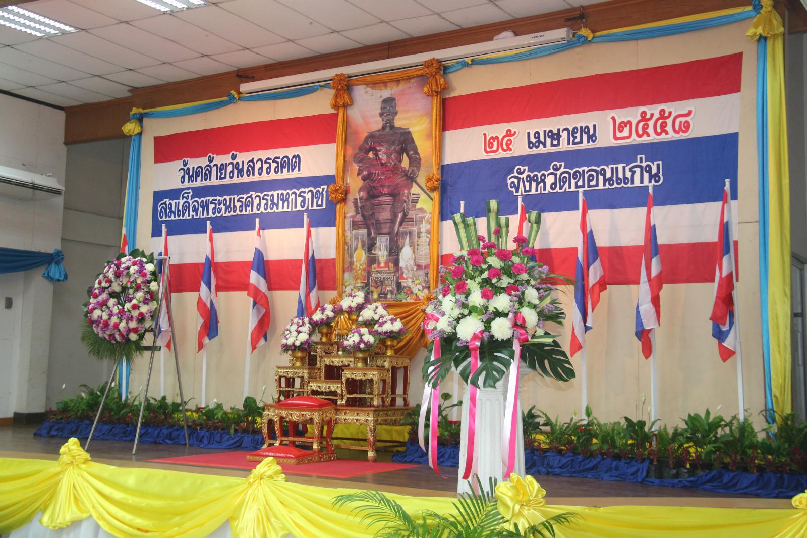 เมื่อวันที่ ๒๕ เมษายน ๒๕๕๘ นายก อบจ.ขอนแก่น ดร.พงษ์ศักดิ์ ตั้งวานิชกพงษ์ มอบหมายให้ รองปลัด อบจ.ขอนแก่น นายประสิทธิ์ อุดมธนะธีระ พร้อมด้วย ข้าราชการ อบจ.ขอนแก่น ร่วมงานพิธี “วันคล้ายวันสวรรคตสมเด็จพระนเรศวรมหาราช” เพื่อแสดงออกถึงความจงรักภักดี และน้อมรำลึกถึงพระมหากรุณาธิคุณของ สมเด็จพระนเรศวรมหาราช โดยมี ผู้ว่าราชการจังหวัดขอนแก่น นายกำธร ถาวรสถิตย์ เป็นประธานในพิธี ในโอกาสนี้ มีผู้แทนจากหน่วยงานภาครัฐ ภาคเอกชน รัฐวิสาหกิจ และองค์กรต่างๆ เข้าร่วมเป็นเกียรติในพิธี ณ ศาลาประชาคมจังหวัดขอนแก่น อ.เมืองขอนแก่น จ.ขอนแก่น