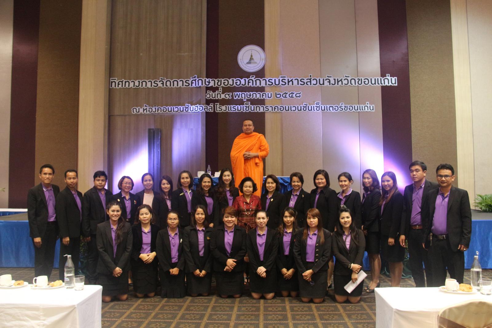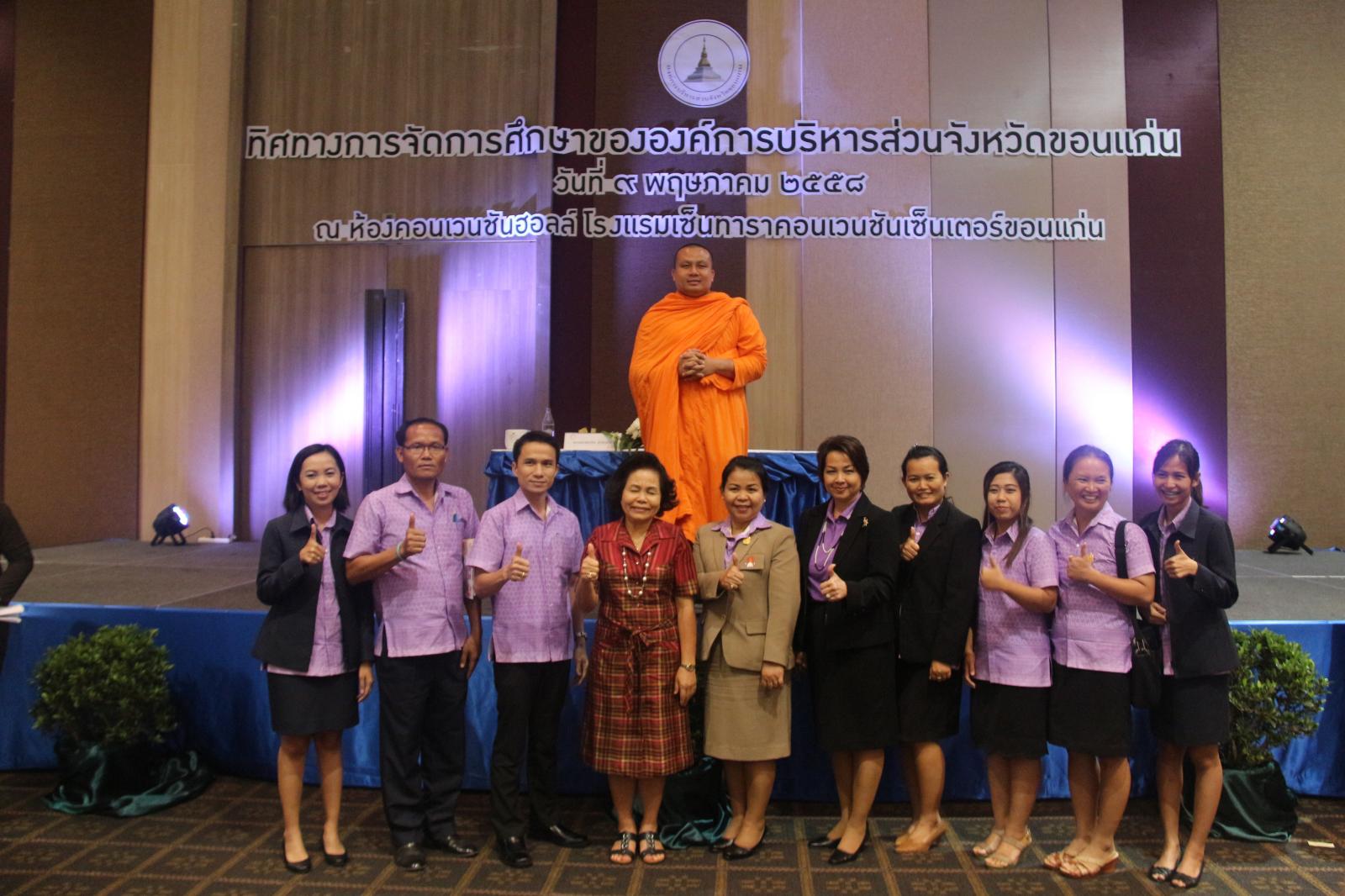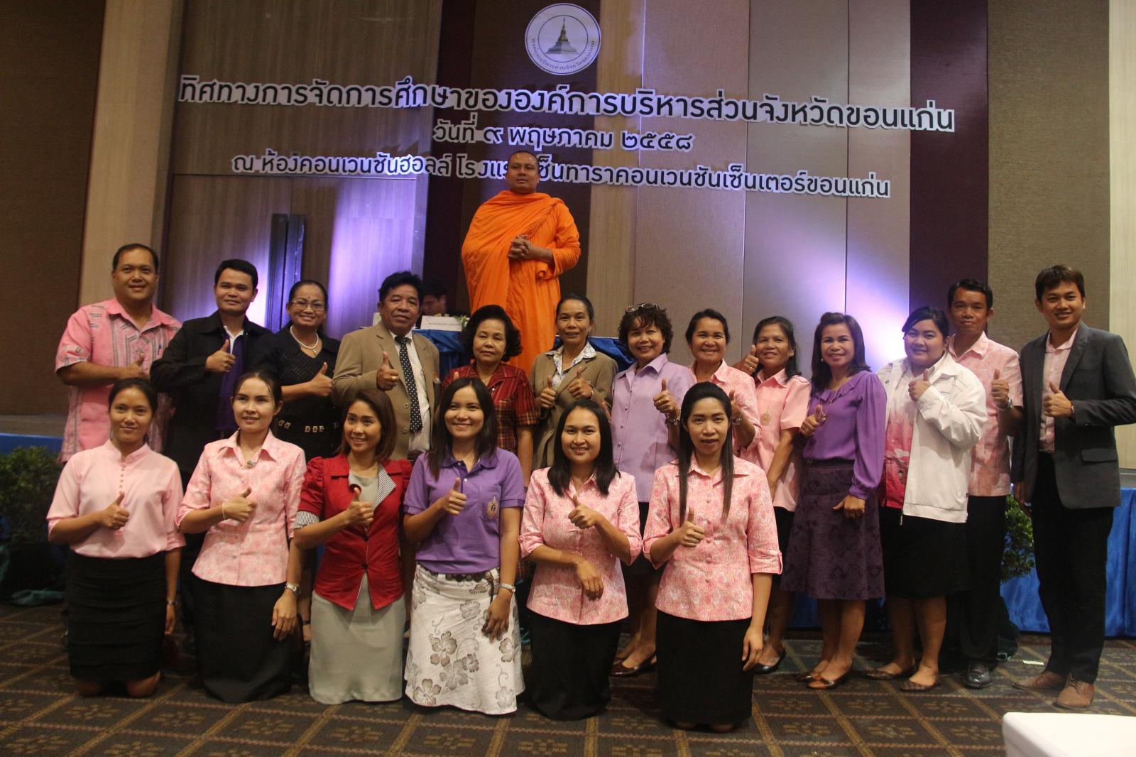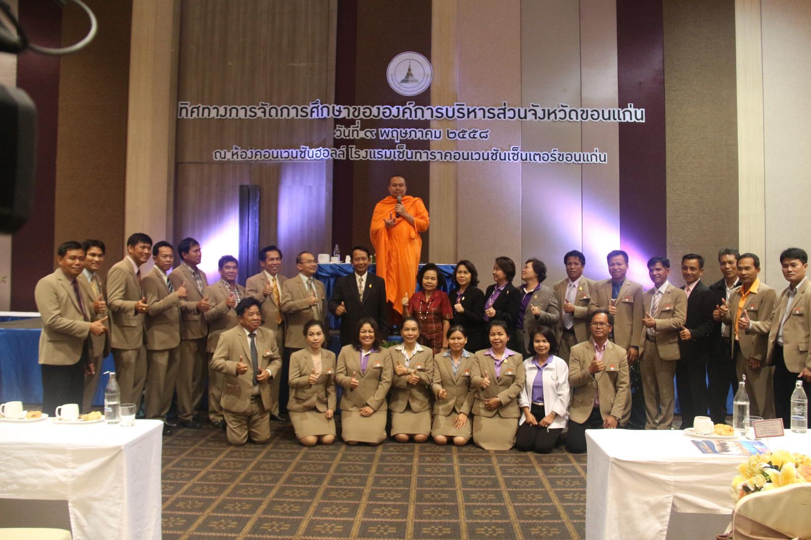 เมื่อวันที่ ๙ พฤษภาคม ๒๕๕๘ นายก อบจ.ขอนแก่น ดร.พงษ์ศักดิ์ ตั้งวานิชกพงษ์ เป็นประธานเปิดโครงการสัมมนาทิศทางการจัดการศึกษาขององค์การบริหารส่วนจังหวัดขอนแก่น โดย ผู้อำนวยการสำนักการศึกษา ศาสนา และวัฒนธรรม นายปิยะชัย ตุ่ยสิมา เป็นผู้กล่าวรายงาน มีวัตถุประสงค์เพื่อรับฟังนโยบาย และทิศทางด้านการศึกษาขององค์การบริหารส่วนจังหวัดขอนแก่น เพื่อสร้างความตระหนักในบทบาทหน้าที่และความรับผิดชอบของข้าราชการครูและบุคลากรทางการศึกษาในสังกัด ตลอดจนเพื่อรับแนวทางการพัฒนาการทำงานของข้าราชการครูและบุคลากรทางการศึกษาให้มีศักยภาพ มีคุณธรรม จริยธรรมตามจรรยาบรรณวิชาชีพครูและบุคลากรทางการศึกษา ในโอกาสนี้มี รองนายก อบจ.ขอนแก่น นางวัชราภรณ์ ผ่องใส พร้อมด้วย สมาชิกสภาองค์การบริหารส่วนจังหวัดขอนแก่น ผู้บริหาร หัวหน้าส่วนราชการ ข้าราชการ และพนักงาน อบจ.ขอนแก่น เข้าร่วมเป็นเกียรติในพิธี มีผู้เข้าร่วมสัมมนา จำนวน ๗๕๐ คน ณ ห้องคอนเวนชั่นฮอลล์ โรงแรมเซ็นทารา คอนเวนชั่น เซ็นเตอร์ ขอนแก่น อ.เมืองขอนแก่น จ.ขอนแก่น