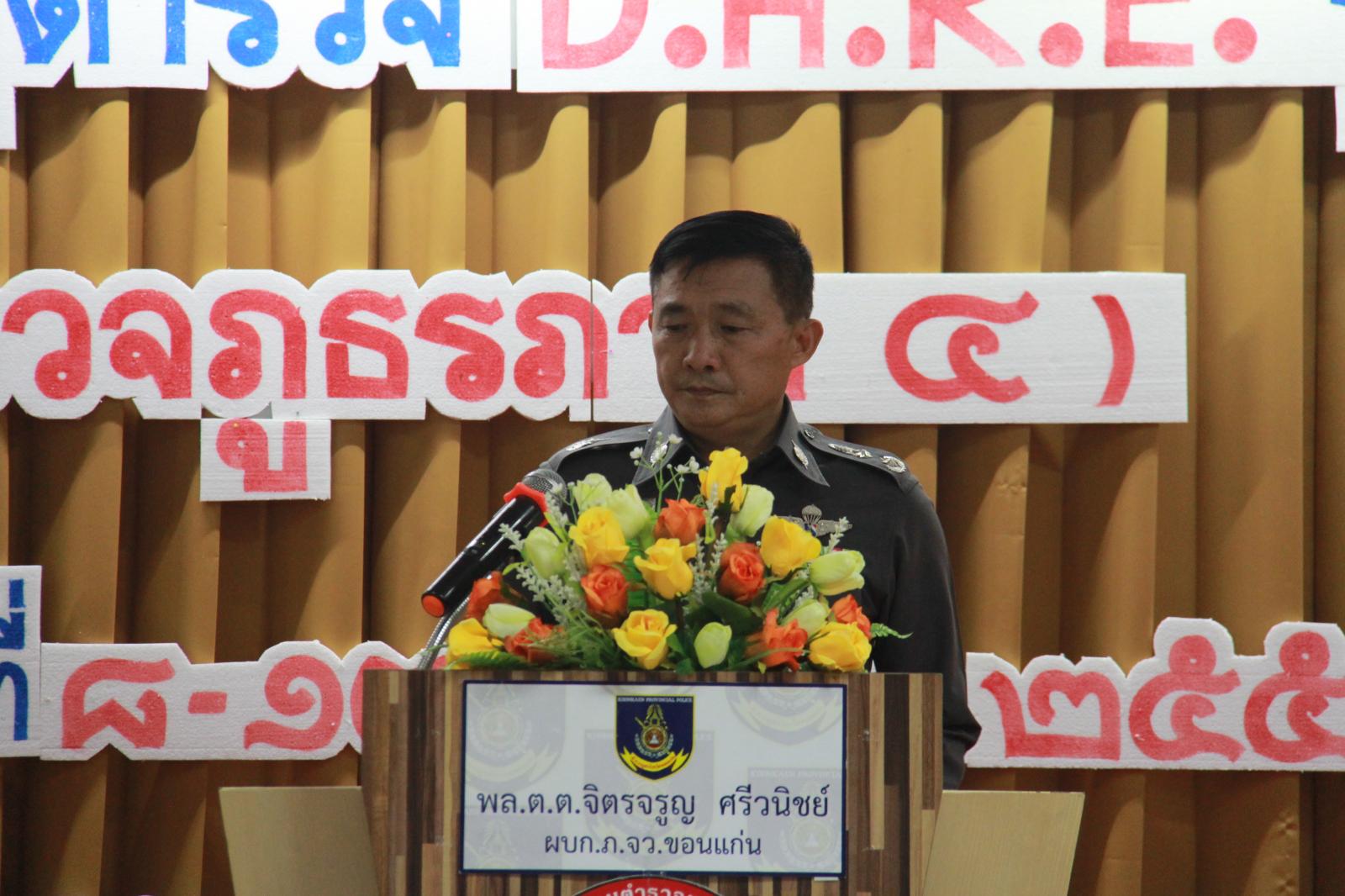 เมื่อวันที่ ๘ มิถุนายน ๒๕๕๘ นายก อบจ.ขอนแก่น ดร.พงษ์ศักดิ์ ตั้งวานิชกพงษ์ มอบหมายให้ รองนายก อบจ.ขอนแก่น นายสิทธิกุล ภูคำวงศ์ ร่วมพิธีเปิด “การฝึกอบรมหลักสูตรครูตำรวจ D.A.R.E. รุ่นที่ ๑๗๙” เพื่อเป็นการป้องกันการแพร่ระบาดยาเสพติดในเด็กนักเรียนชั้นประถมศึกษาปีที่ ๖ โดยมี ผู้บังคับการตำรวจภูธรจังหวัดขอนแก่น พล.ต.ต.จิตรจรูญ ศรีวินิชย์ เป็นประธานในพิธี มีผู้เข้าร่วมอบรม จำนวน ๔๘ คน ณ โรงแรมแก่นนคร อ.เมืองขอนแก่น จ.ขอนแก่น