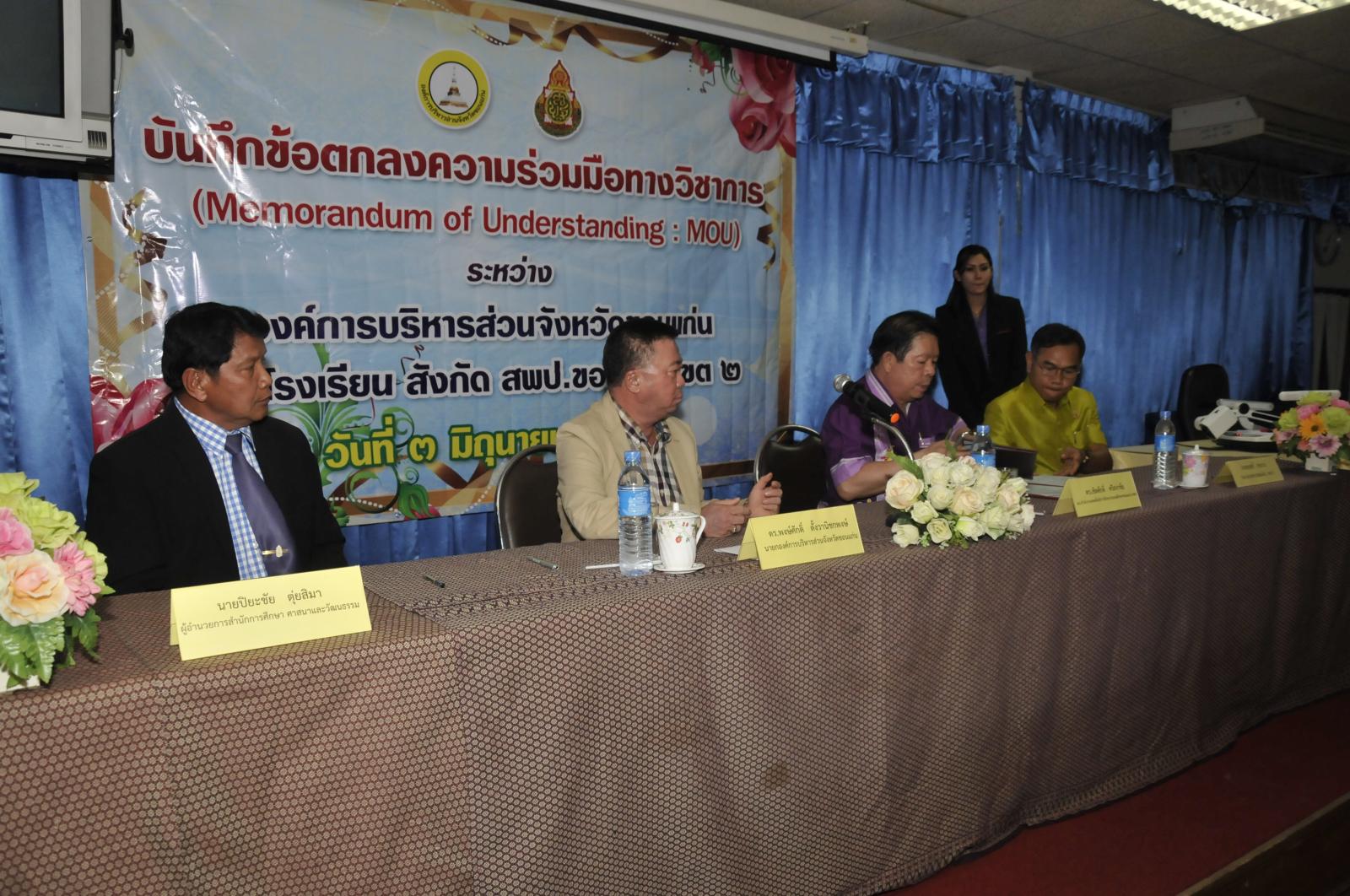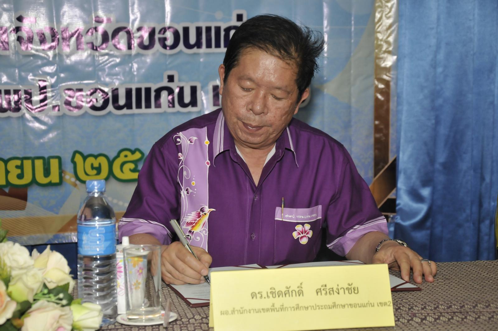 ดร.พงษ์ศักดิ์ ตั้งวานิชกพงษ์ นายกองค์การบริหารส่วนจังหวัดขอนแก่น พร้อมด้วย นายปิยะชัย ตุ่ยสิมา ผู้อำนวยการสำนักการศึกษา ศาสนาและวัฒนธรรม ร่วมลงนามในบันทึกความร่วมมือ ในการขอรับการจัดสรรสื่อการเรียนการสอน ระหว่างโรงเรียนในสังกัด กับ องค์การบริหารส่วนจังหวัดขอนแก่น จำนวน 27 โรงเรียน โดย สำนักงานเขตพื้นที่การศึกษาประถมศึกษาขอนแก่น เขต 2 จัดขึ้น เมื่อวันที่ 3 มิถุนายน 2558 ณ ห้องประชุมมหาวิทยาลัยรามคำแหง สาขาวิทยบริการเฉลิมพระเกียรติจังหวัดขอนแก่น อำเภอบ้านไผ่