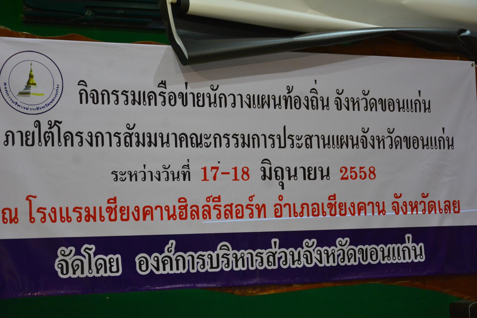 ดร.พงษ์ศักดิ์ ตั้งวานิชกพงษ์ นายกองค์การบริหารส่วนจังหวัดขอนแก่น เป็นประธานเปิดการสัมมนาเครือข่ายนักวางแผนท้องถิ่น ภายไต้โครงการสัมมนาคณะกรรมการประสานแผนพัฒนาท้องถิ่นจังหวัดขอนแก่น จัดโดยองค์การบริหารส่วนจังหวัดขอนแก่น ณ โรงแรมเชียงคานฮิลล์รีสอร์ท อำเภอเชียงคาน จังหวัดเลย โดยมีวัตถุประสงค์เพื่อแลกเปลี่ยนความรู้การจัดทำแผน และสร้างเครือข่ายนักวางแผนท้องถิ่น ให้สามารถจัดทำและประสานแผนระหว่างองค์กรปกครองส่วนท้องถิ่นในเขตจังหวัดขอนแก่นได้อย่างมีประสิทธิภาพ