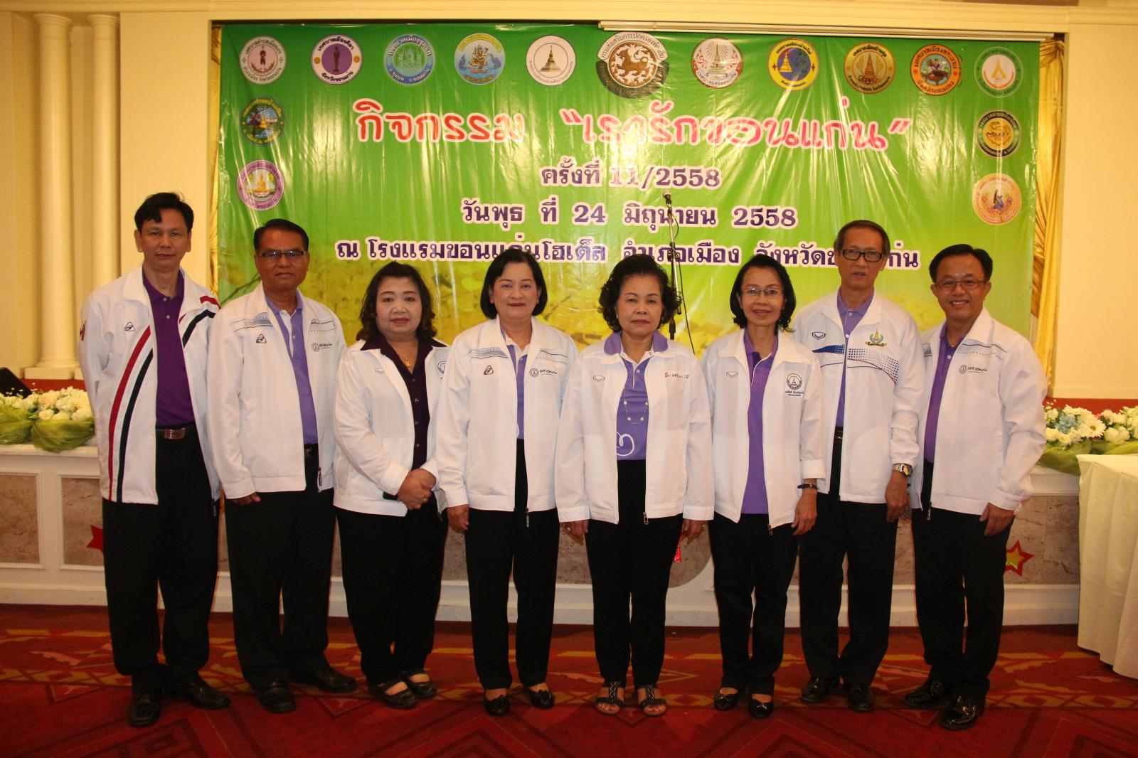 เมื่อวันที่ ๒๔ มิถุนายน 255๘ นายก อบจ.ขอนแก่น ดร.พงษ์ศักดิ์ ตั้งวานิชกพงษ์ มอบหมายให้ รองนายก อบจ.ขอนแก่น นายสิทธิกุล ภูคำวงศ์ พร้อมด้วย ปลัด อบจ.ขอนแก่น นางสุมาลี ฐานวิเศษ หัวหน้าส่วนราชการ ข้าราชการ อบจ.ขอนแก่น เข้าร่วมกิจกรรม “เรารักขอนแก่น” ครั้งที่ ๑๑ ประจำปี 255๘ มีวัตถุประสงค์เพื่อเป็นการพบปะหารือ แลกเปลี่ยนความคิดเห็นระหว่างส่วนราชการ หน่วยงานรัฐวิสาหกิจ รวมทั้งองค์กรภาคเอกชนในจังหวัดขอนแก่น ณ ห้องภูพาน โรงแรมขอนแก่นโฮเต็ล อ.เมืองขอนแก่น จ.ขอนแก่น