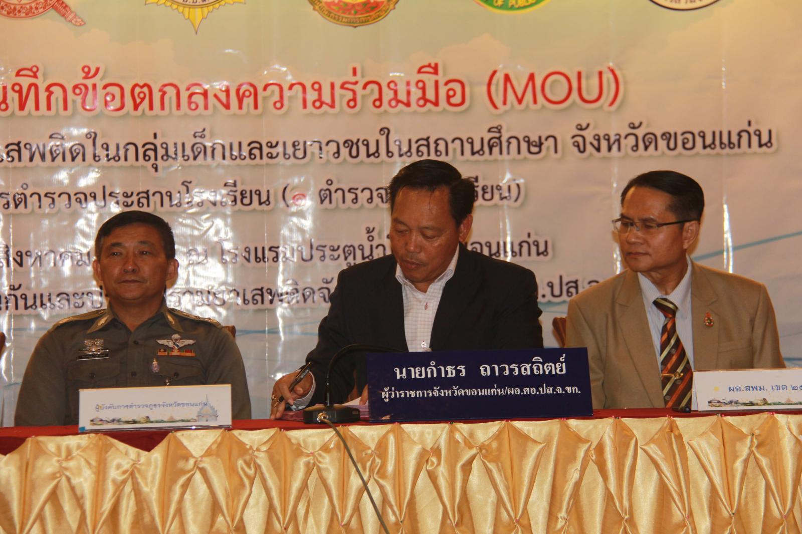พิธีลงนามบันทึกข้อตกลง (MOU) การป้องกันและแก้ไขปัญหายาเสพติดในกลุ่มเด็กและเยาวชนในสถานศึกษา จังหวัดขอนแก่น (๑ ตำรวจ ๑ โรงเรียน)