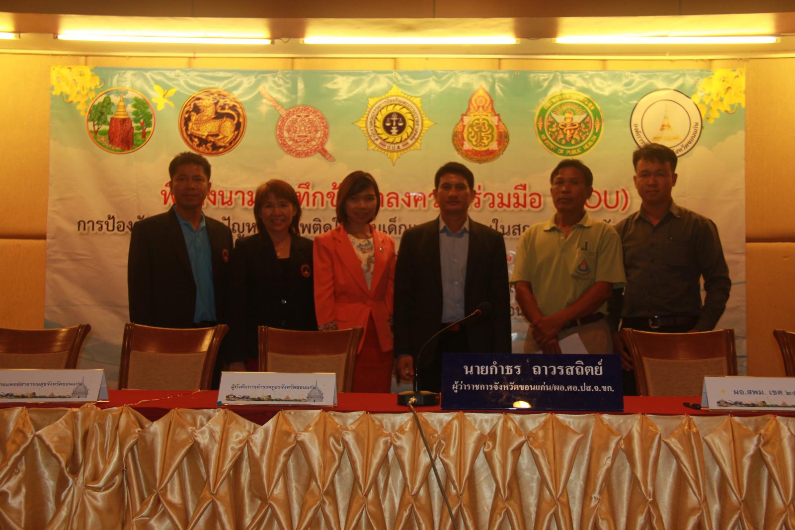 เมื่อวันที่ ๒๘ สิงหาคม ๒๕๕๘ นายก อบจ.ขอนแก่น ดร.พงษ์ศักดิ์ ตั้งวานิชกพงษ์ มอบหมายให้ รองนายก อบจ.ขอนแก่น นายสิทธิกุล ภูคำวงศ์ ร่วมลงนามบันทึกข้อตกลง (MOU) การป้องกันและแก้ไขปัญหายาเสพติดในกลุ่มเด็กและเยาวชนในสถานศึกษา จังหวัดขอนแก่น เพื่อแสดงเจตจำนงร่วมกันขับเคลื่อนการดำเนินงานตามแผนพัฒนาความร่วมมือในการแก้ไขปัญหายาเสพติด ตามโครงการตำรวจประสานโรงเรียน (๑ ตำรวจ ๑ โรงเรียน) ในการแก้ปัญหายาเสพติดในกลุ่มเยาวชนในสถานศึกษา มีโรงเรียน 27 แห่ง เข้าร่วมโครงการจากเขตพื้นที่มัธยมศึกษา เขต 25 และเขตพื้นที่การศึกษา เขต 2 เขต 3 เขต 4 และ เขต 5 โดยมี ผู้ว่าราชการจังหวัดขอนแก่น นายกำธร ถาวรสถิตย์ พร้อมด้วย ผู้บังคับการตำรวจภูธรจังหวัดขอนแก่น พล.ต.ต.จิตรจรูญ ศรีวนิชย์ ,นายแพทย์สาธารณสุขจังหวัดขอนแก่น นายแพทย์สุริยา รัตนปริญญา ,รองผู้อำนวยการสำนักงานเขตพื้นที่การศึกษามัธยมศึกษา เขต ๒๕ นายทวีศิลป์ สารแสน ,ผู้แทนจากสำนักงานเขตพื้นที่การศึกษาประถมศึกษาขอนแก่น เขต ๓ – ๕ และผู้แทนจากสำนักงานป้องกันและปราบปรามยาเสพติด ภาค ๔ จังหวัดขอนแก่น เป็นผู้ร่วมลงนาม ในครั้งนี้ ทั้งนี้มีผู้แทนจากภาครัฐ และเอกชน ตลอดจนสื่อมวลชนทุกแขนงในจังหวัดขอนแก่น ร่วมเป็นเกียรติในพิธี ณ โรงแรมประตูน้ำขอนแก่น อ.เมืองขอนแก่น จ.ขอนแก่น