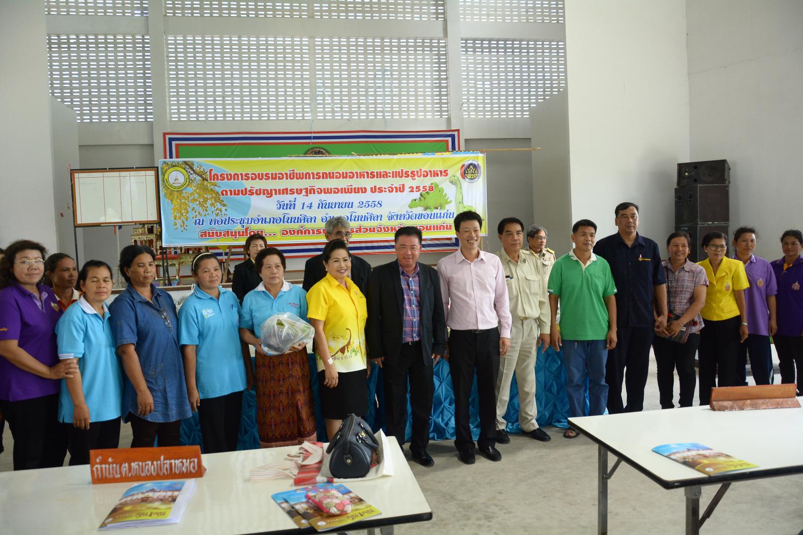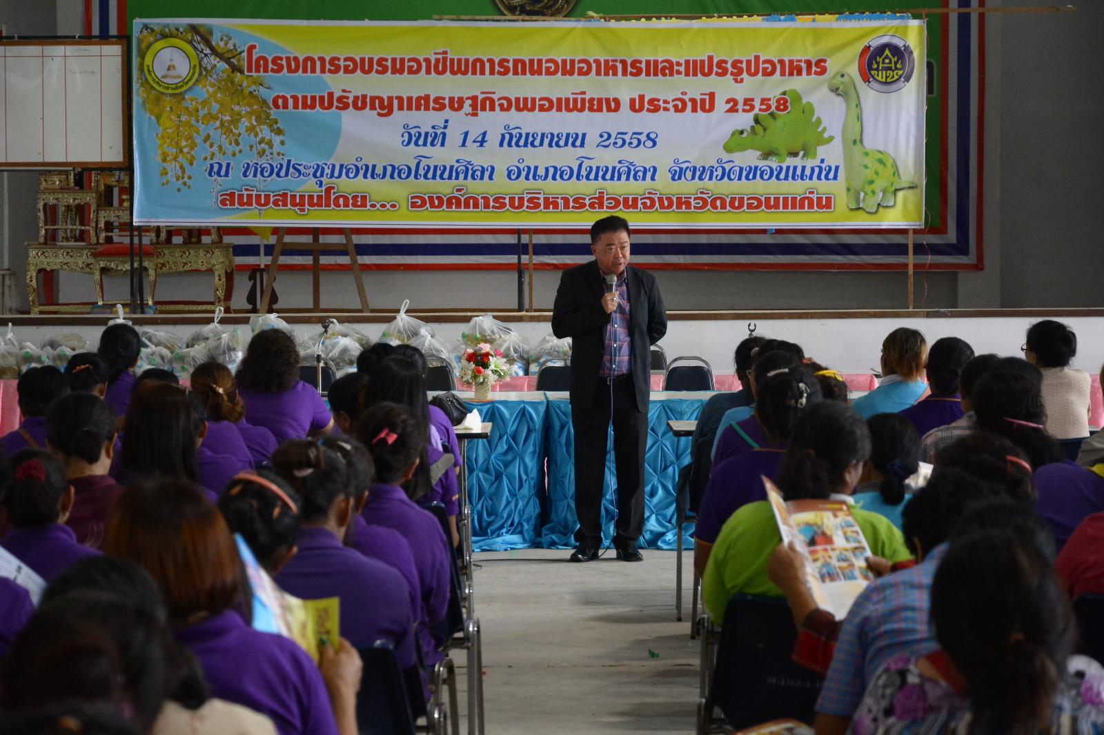ดร.พงษ์ศักดิ์ ตั้งวานิชกพงษ์ นายกองค์การบริหารส่วนจังหวัดขอนแก่น เป็นประธานเปิดโครงการอบรมอาชีพการถนอมอาหารและแปรรูปอาหาร ตามปรัชญาเศรษฐกิจพอเพียง ประจำปี 2558 ณ หอประชุมอำเภอโนนศิลา จังหวัดขอนแก่น โดยมี นายศรัญ กสิกิจวรกุล สมาชิกสภาองค์การบริหารส่วนจังหวัดขอนแก่น สมาชิกสภาตำบล ที่ปรึกษา เลขานุการ ประธานสภา กำนัน ผู้ใหญ่บ้าน ผู้นำชุมชน ประชาคมหมู่บ้าน ร่วมให้การต้อนรับ เมื่อวันที่ 14 กันยายน 2558