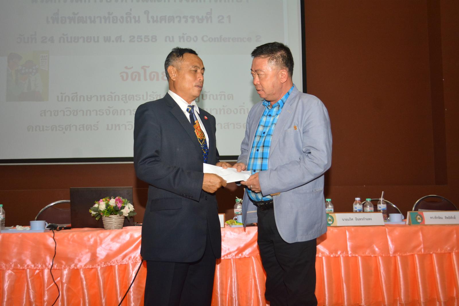 ดร.พงษ์ศักดิ์ ตั้งวานิชกพงษ์ นายกองค์การบริหารส่วนจังหวัดขอนแก่น ให้เกียรติเป็นวิทยากรบรรยายพิเศษในโครงการสัมมนาวิชาการ เรื่อง” นวัตกรรมการบริหารและการจัดการศึกษาเพื่อพัฒนาท้องถิ่นในทศวรรษที่ 21 ในมุมมองของนักบริหารและนักปกครองส่วนท้องถิ่น ควรเป็นอย่างไร” ให้กับนักศึกษาหลักสูตรปรัชญาดุษฎีบัณฑิต สาขาวิชาการจัดการศึกษาเพื่อพัฒนาท้องถิ่น คณะครุศาสตร์ มหาวิทยาลัยราชภัฎมหาสารคาม เมื่อวันที่ 24 กันยายน 2558