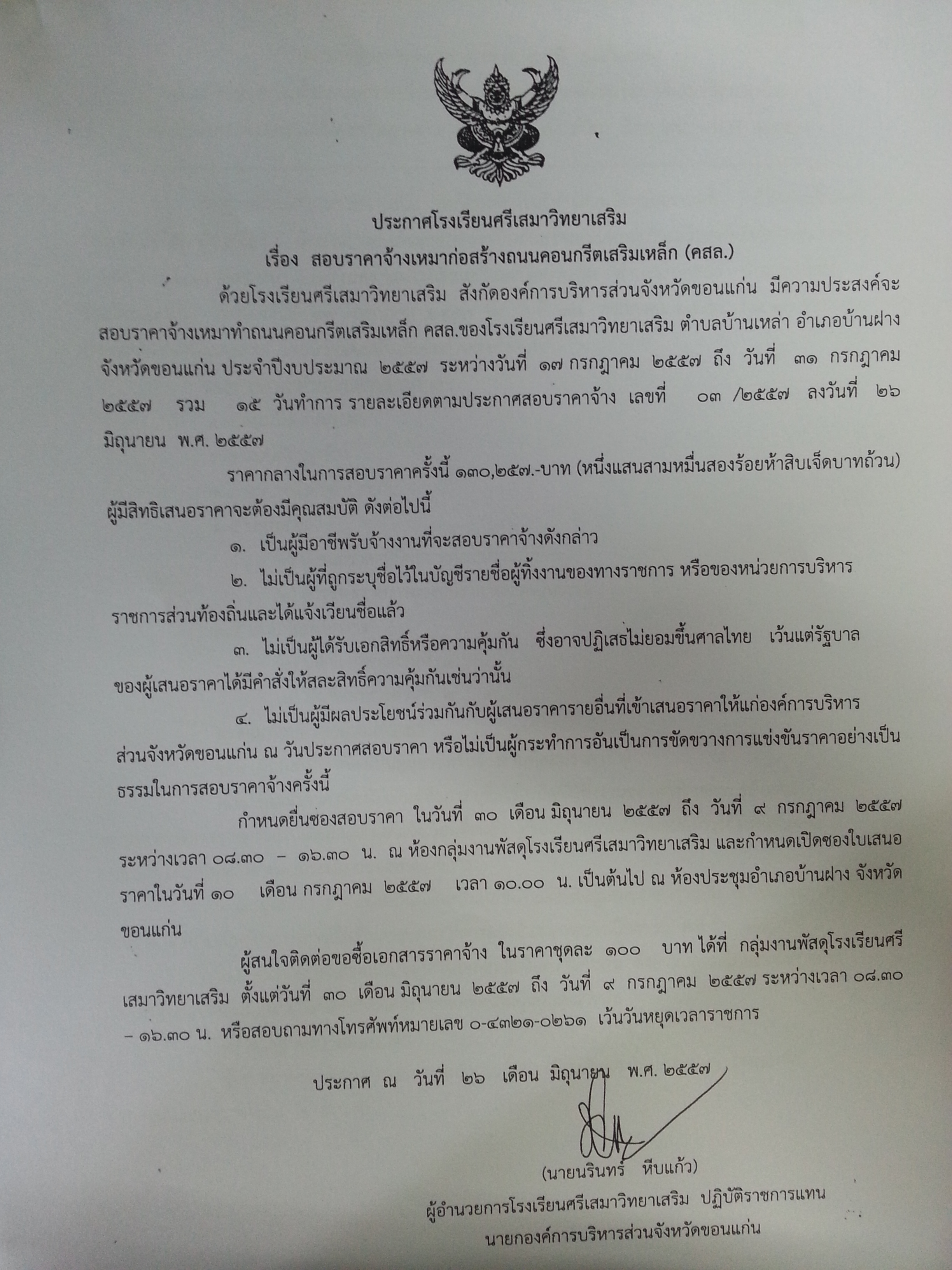 สอบราคาจ้างเหมาก่อสร้างถนนคอนกรีตเสริมเหล็ก (คสล) สอบราคาจ้างเหมาก่อสร้างถนนคอนกรีตเสริมเหล็ก (คสล) ไฟล์แนบ ดาวน์โหลดไฟล์แนบ