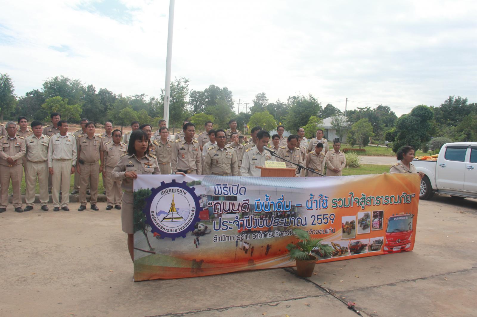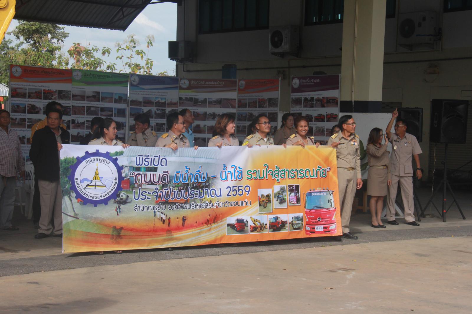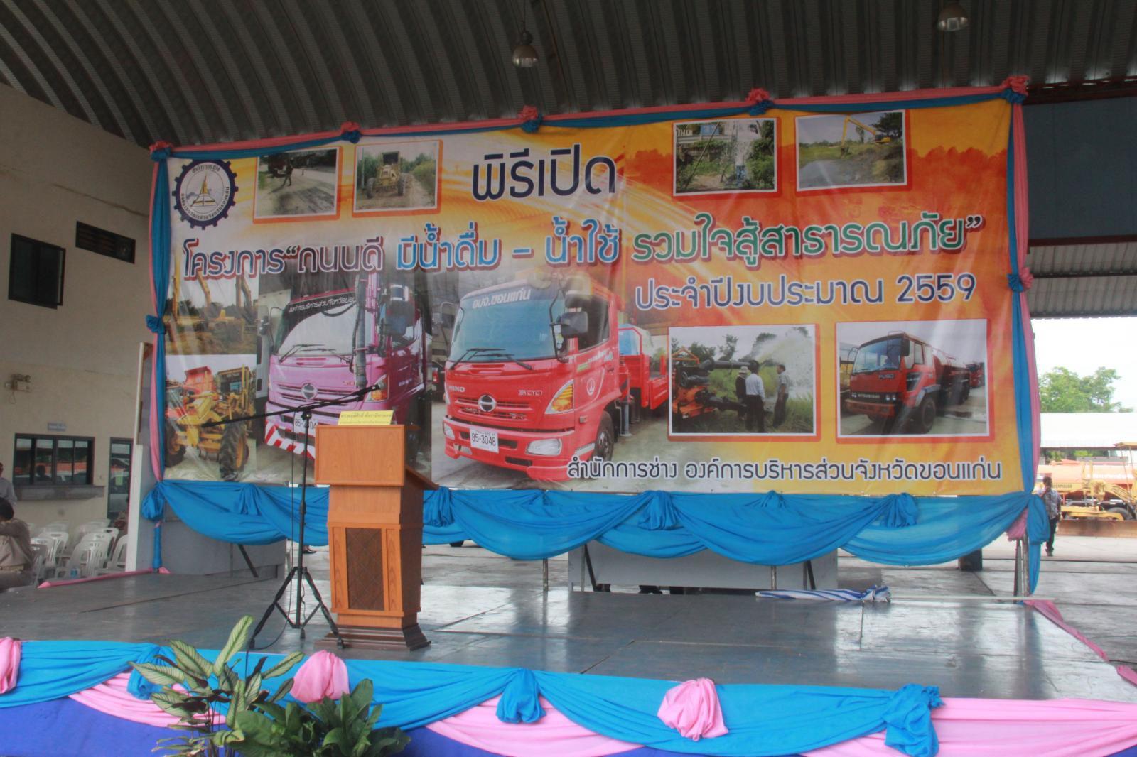 เมื่อวันที่ ๒ พฤศจิกายน ๒๕๕๘ นายก อบจ.ขอนแก่น ดร.พงษ์ศักดิ์ ตั้งวานิชกพงษ์ เป็นประธานในพิธีเปิดโครงการ “ถนนดี มีน้ำดื่ม – น้ำใช้ รวมใจสู้สาธารณภัย” ประจำปีงบประมาณ ๒๕๕๙ มีวัตถุประสงค์เพื่อบรรเทาความเดือดร้อนและแก้ปัญหาภัยแล้งของประชาชน ในโอกาสนี้ รองนายก อบจ.ขอนแก่น นายสิทธิกุล ภูคำวงศ์ พร้อมด้วย รองนายก อบจ.ขอนแก่น นายวัฒนา ช่างเหลา สมาชิกสภาองค์การบริหหารส่วนจังหวัดขอนแก่น คณะผู้บริหาร หัวหน้าส่วนราชการ ข้าราชการ พนักงาน อบจ.ขอนแก่น ร่วมเป็นเกียรติในพิธี ณ ศูนย์เครื่องจักรกล สำนักการช่าง องค์การบริหารส่วนจังหวัดขอนแก่น อ.เมืองขอนแก่น จ.ขอนแก่น