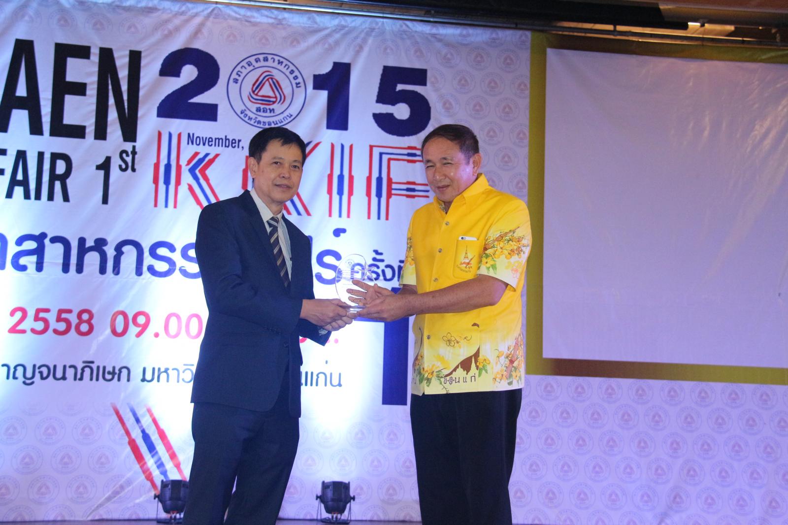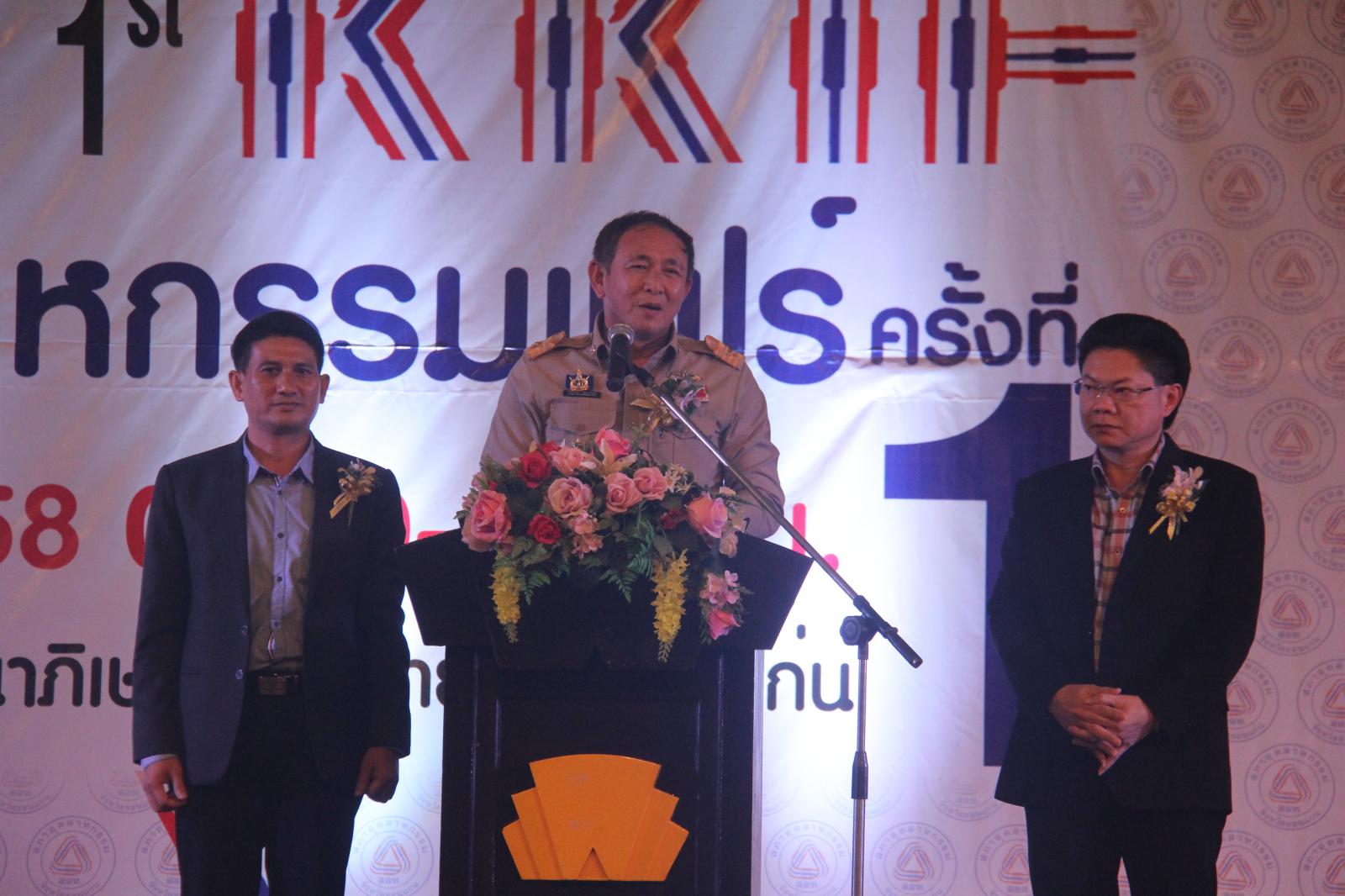 เมื่อวันที่ ๑๙ พฤศจิกายน ๒๕๕๘ นายก อบจ.ขอนแก่น ดร.พงษ์ศักดิ์ ตั้งวานิชกพงษ์ มอบหมายให้ รองนายก อบจ.ขอนแก่น นายสิทธิกุล ภูคำวงศ์ ร่วมพิธีเปิดและขึ้นรับโล่ผู้สนับสนุนการจัดงานขอนแก่นอุตสาหกรรมแฟร์ ครั้งที่ ๑ โดย รองผู้ว่าราชการจังหวัดขอนแก่น นายศิวาโรจน์ มุ่งหมายผล เป็นผู้กล่าวต้อนรับ โดยมี ปลัดกระทรวงอุตสาหกรรม นายอาทิตย์ วุฒิคะโร เป็นประธาน การจัดงานในครั้งนี้มีวัตถุประสงค์เพื่อกระตุ้นเศรษฐกิจจังหวัดขอนแก่น และแสดงศักยภาพด้านอุตสาหกรรม การค้า การบริการ และการลงทุนของเมืองขอนแก่น และหัวเมืองต่างๆ ตลอดเส้นทาง EWEC (East – West Economic Corridor) ให้เป็นที่ประจักษ์ต่อประชาชนและผู้สนใจ รวมทั้งเกิดการ ร่วมลงทุนหรือเป็นคู่ค้าทางธุรกิจ ตลอดจนเป็นการสนับสนุนนโยบาย KHONKAEN MICE CITY อันทำให้เกิดการพัฒนาเศรษฐกิจที่ดีต่อจังหวัดขอนแก่นและภูมิภาคต่อไป ในโอกาสนี้มี นายกเทศมนตรี นครขอนแก่น นายธีระศักดิ์ ฑีฆายุพันธุ์ ,ผู้อำนวยการการท่องเที่ยวแห่งประเทศไทย สำนักงานขอนแก่น นายนพรัตน์ กอกหวาน ,ประธานสภาอุตสาหกรรมจังหวัดขอนแก่น นายสามารถ อังวราวงศ์ ทั้งนี้มีผู้แทนจากหน่วยงานภาครัฐ และเอกชน ตลอดจนสื่อมวลชนทุกแขนงในจังหวัดขอนแก่น ร่วมเป็นเกียรติในพิธี จัดงานขึ้นในระหว่างวันที่ ๑๙ – ๒๒ พฤศจิกายน ๒๕๕๘ ณ ศูนย์ประชุมอเนกประสงค์กาญจนาภิเษก มหาวิทยาลัยขอนแก่น อ.เมืองขอนแก่น จ.ขอนแก่น